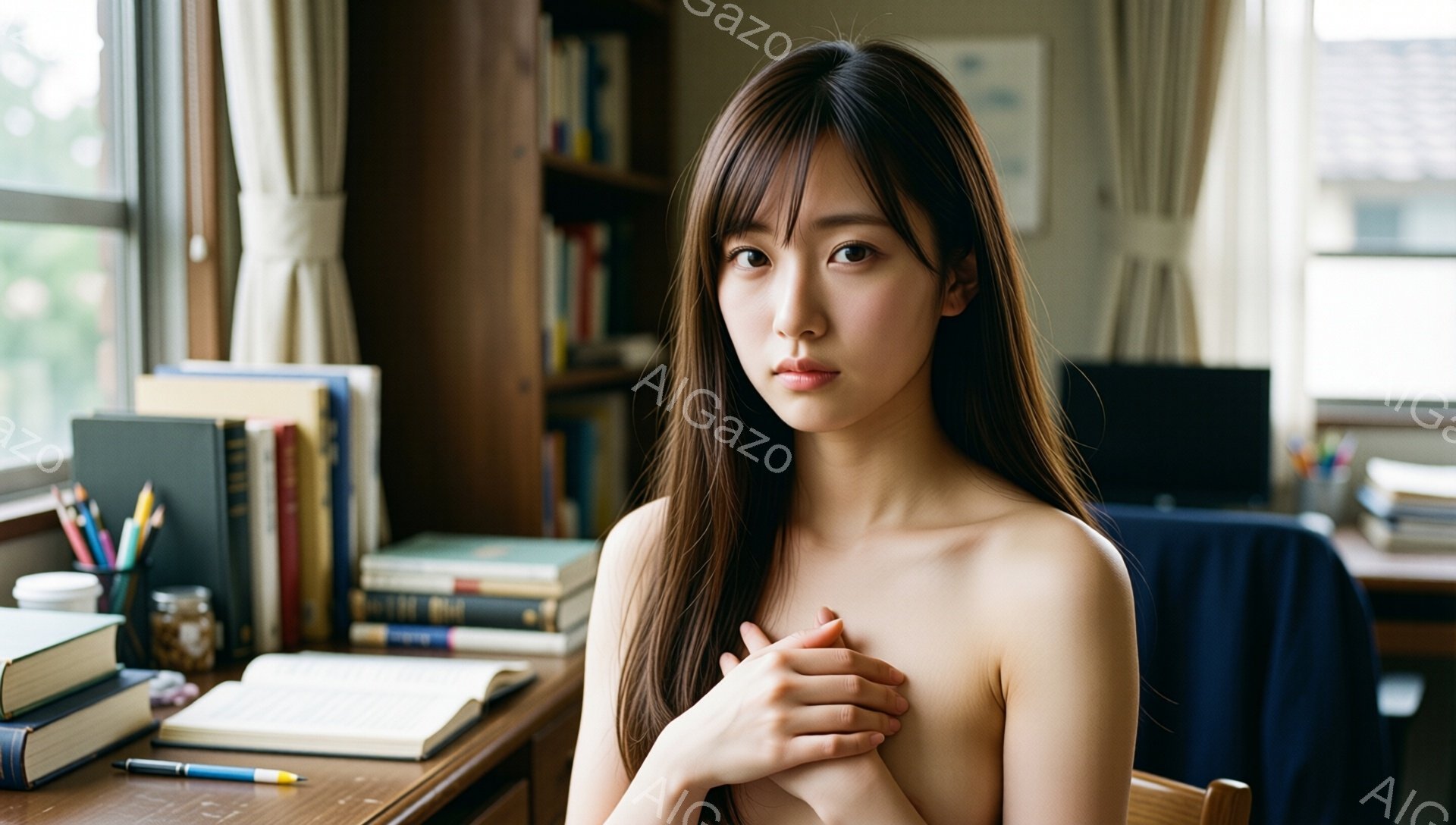 「長い黒髪の女性が教室で胸の前で両手を合わせています。彼女は控えめな表情で、少し悲しげな雰囲気を醸し出しています。背景には本棚や机、窓から差し込む自然光があり、教」は、2026年01月06日に作成されたAI生成画像です。 学生をテーマとした高品質なビジュアル素材で、 1920×1088px の解像度で提供しています。 個人利用・商用利用ともに無料でダウンロード可能で、クレジット表記も不要です。