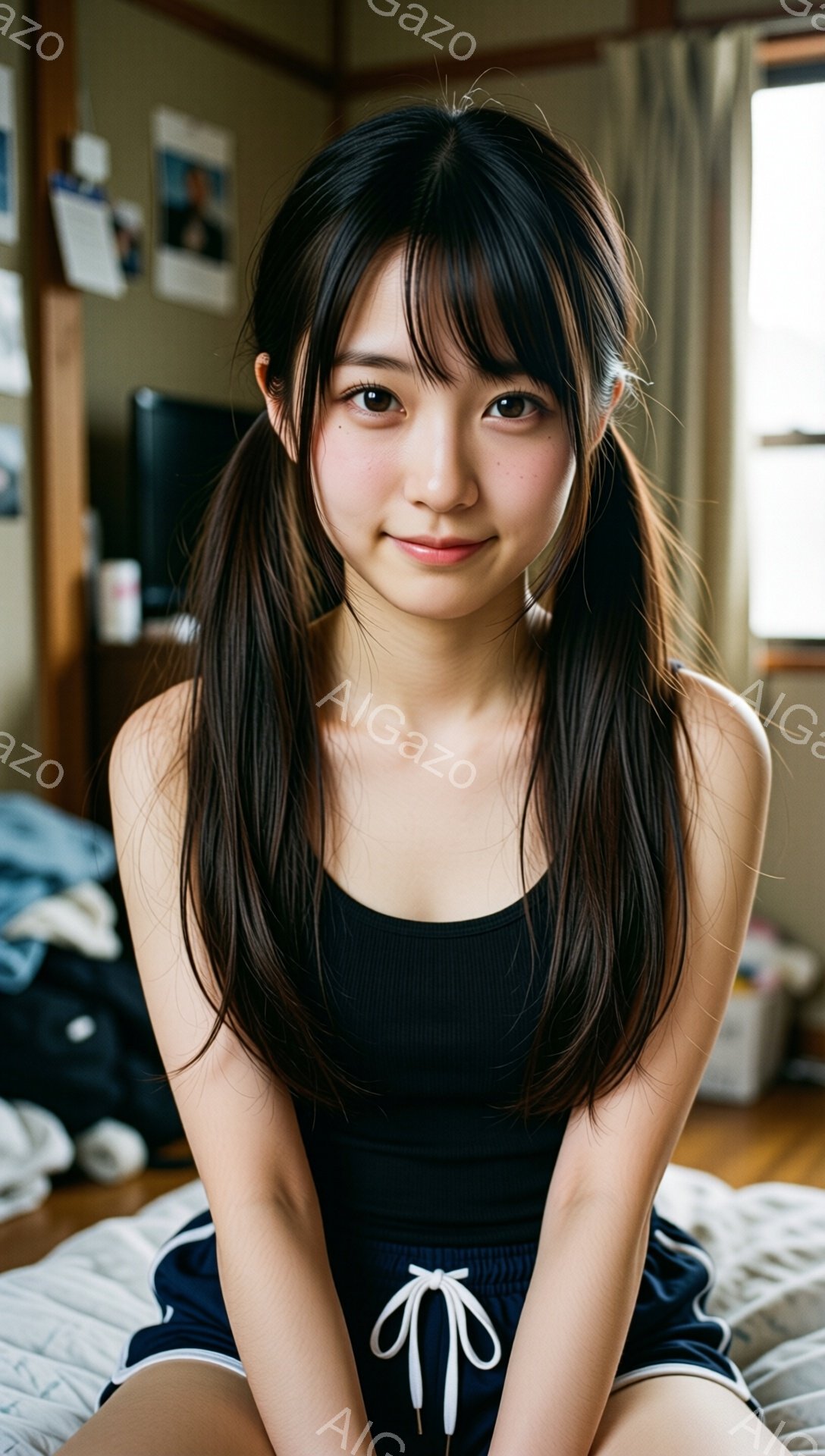 「長い黒髪をハーフアップにし、白いタンクトップとデニムのショートパンツを着た若い女性が座っています。彼女は穏やかな表情でカメラを見つめ、リラックスした雰囲気です。」は、2026年01月06日に作成されたAI生成画像です。 カジュアルをテーマとした高品質なビジュアル素材で、 1088×1920px の解像度で提供しています。 個人利用・商用利用ともに無料でダウンロード可能で、クレジット表記も不要です。