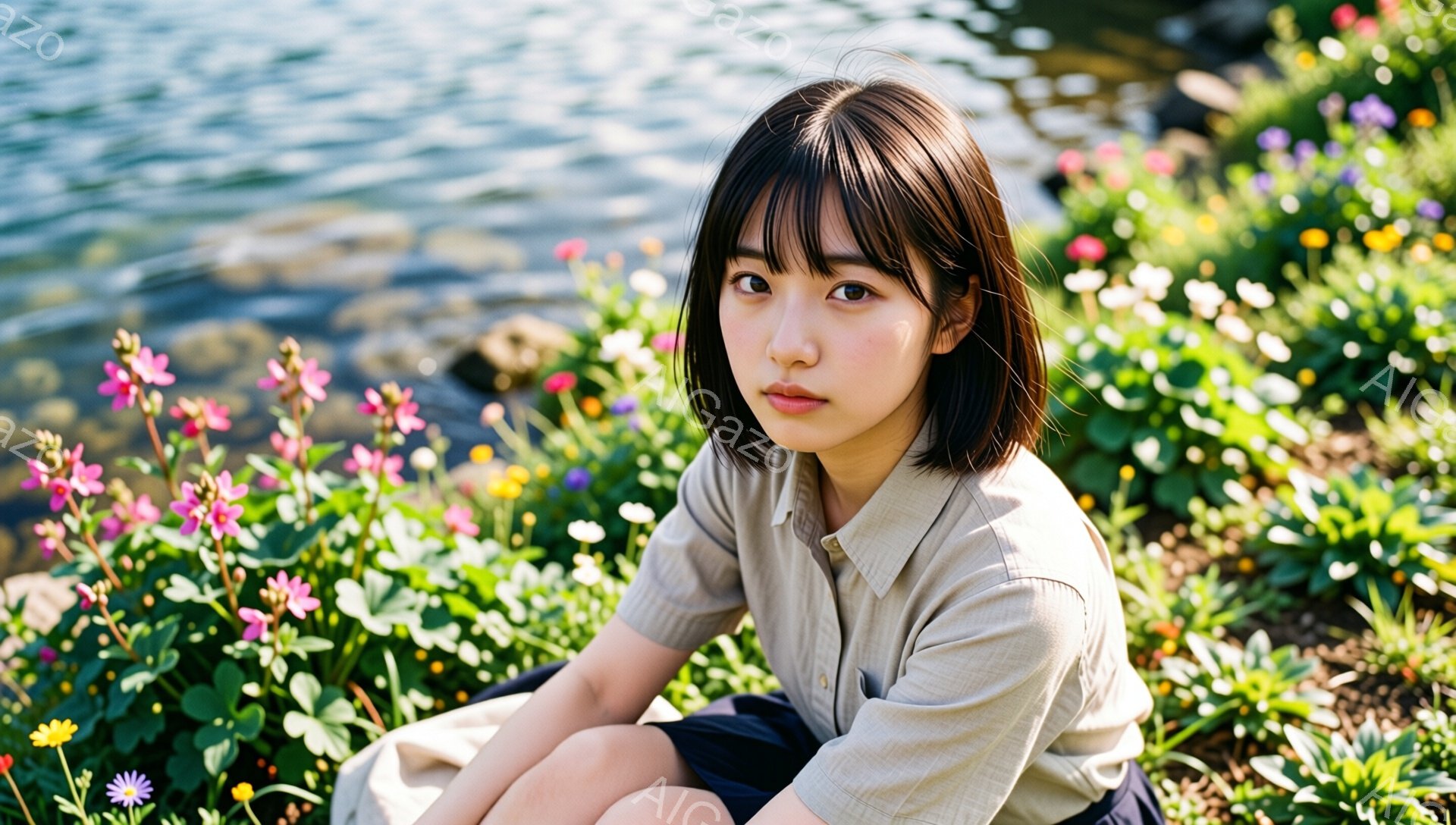 「若い女性が花壇の前に座っており、白いシャツを着ています。彼女は短い黒髪で、前髪が目にかかっています。表情は落ち着いており、少し微笑んでいるように見えます。」は、2026年01月06日に作成されたAI生成画像です。 ポートレートをテーマとした高品質なビジュアル素材で、 1920×1088px の解像度で提供しています。 個人利用・商用利用ともに無料でダウンロード可能で、クレジット表記も不要です。