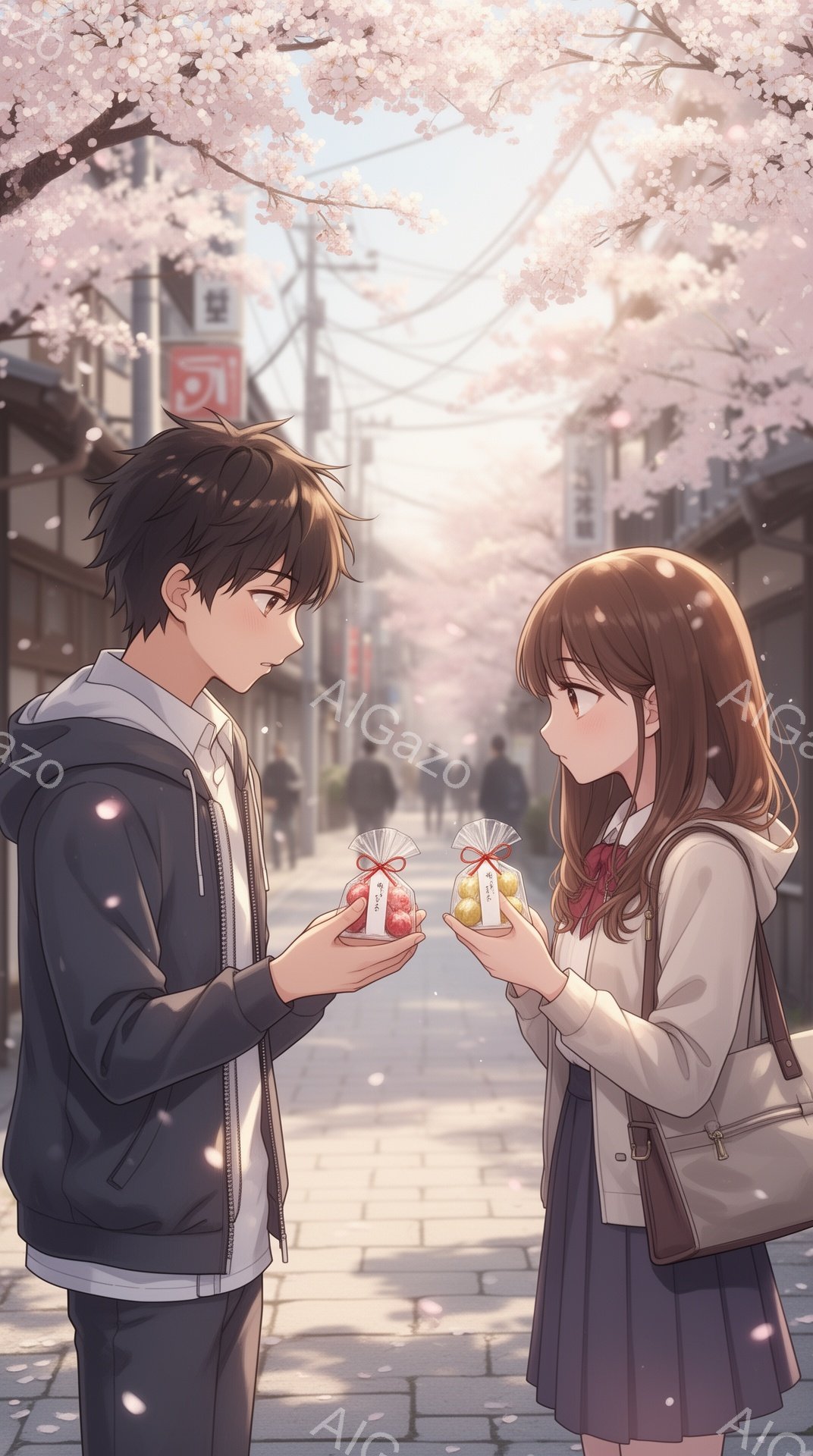 カップルとギフトの要素を持つAI生成画像「一対の若い男女が夕暮れ時にギフトを交換している様子が写っている。女性は白いブラウスに長い髪を下ろし、微笑みながらプレゼン」。 Flux.2によって2026年02月に生成されました。 解像度は 1072×1920px で、 ウェブサイトやSNS投稿に最適なサイズです。 商用利用OK・会員登録不要・クレジット表記不要で無料ダウンロードできます。