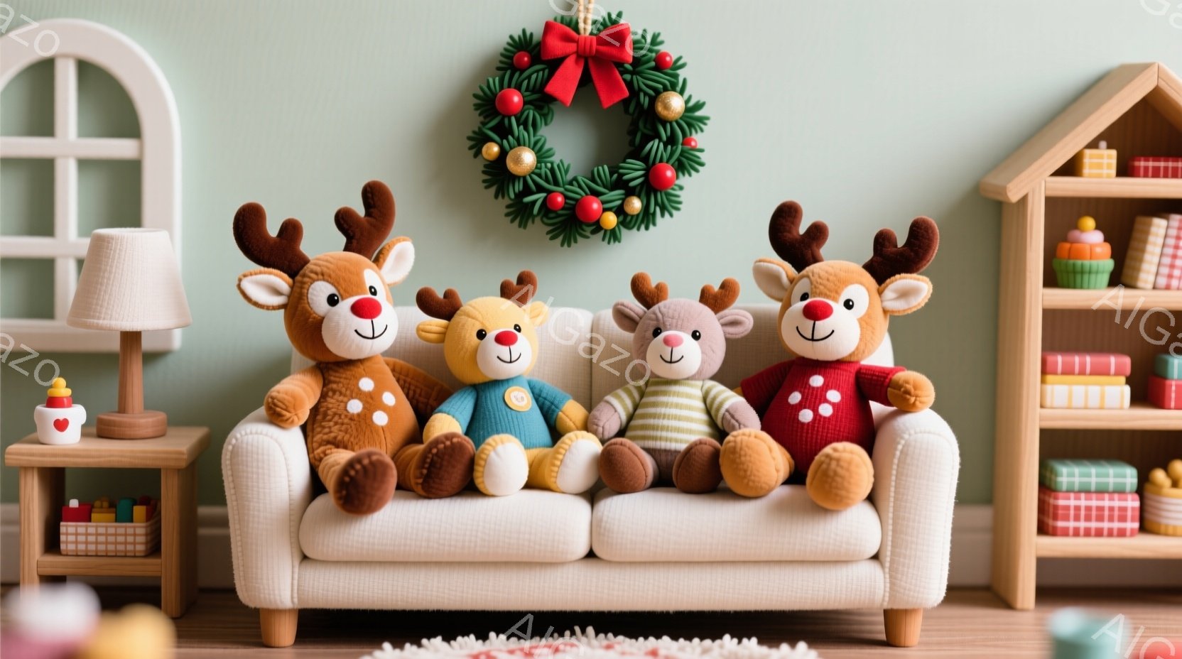 この無料AI生成画像「柔らかい茶色の毛並みのウサギのぬいぐるみがおもちゃ用のゆりかごに横たわっています。緑、赤、白の編み模様のブランケットがウサギを暖かく包み込み、穏やかな表情をしています。背景にはクリスマスツリーや可愛らしいおもちゃの家が見え、温かく平和なクリスマスの雰囲気が漂っています。」は、2025年10月21日に作成されました。 サイズは 1664×928px の高解像度で、商用利用も可能なフリー素材として提供しています。