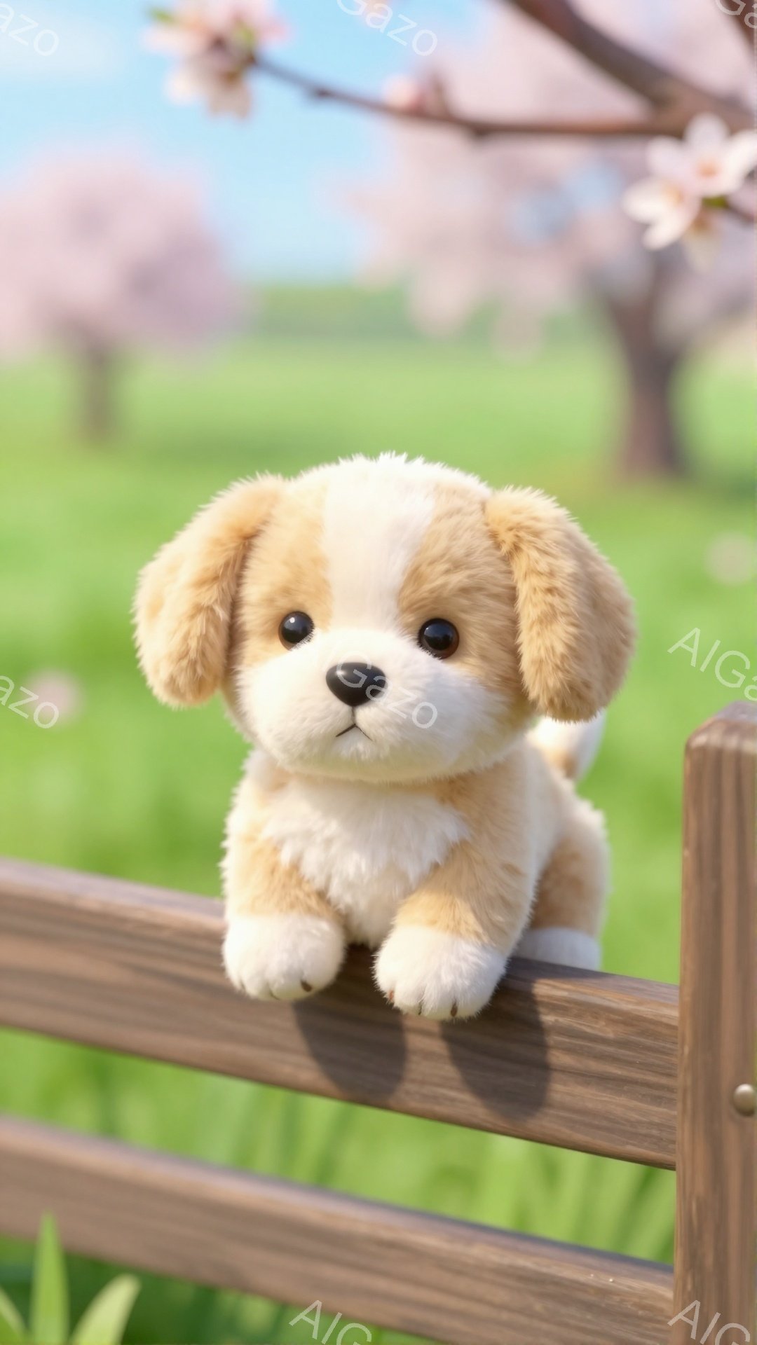 クリーム色とパピーの要素を持つAI生成画像「ふわふわのクリーム色のパピーが、ピンクと白のチェックのブランケットの上に座っています。パピーは茶色の耳と、明るい黄色の首」。 Z Imageによって2026年03月に生成されました。 解像度は 1080×1920px で、 ウェブサイトやSNS投稿に最適なサイズです。 商用利用OK・会員登録不要・クレジット表記不要で無料ダウンロードできます。