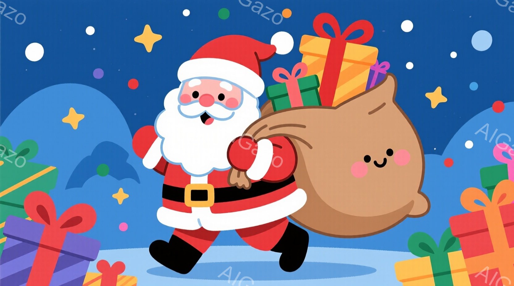 この無料AI生成画像「サンタクロースが大きなプレゼントの袋を肩に担いで、右方向に歩いています。赤い帽子と衣装、黒いブーツを身に着け、白いひげと頬の赤い顔は、楽しげな表情を表現しています。背景は雪景色で、白い雪片が舞い散り、暖かく幸せなクリスマスの雰囲気を醸し出しています。」は、2025年10月22日に作成されました。 サイズは 1664×928px の高解像度で、商用利用も可能なフリー素材として提供しています。