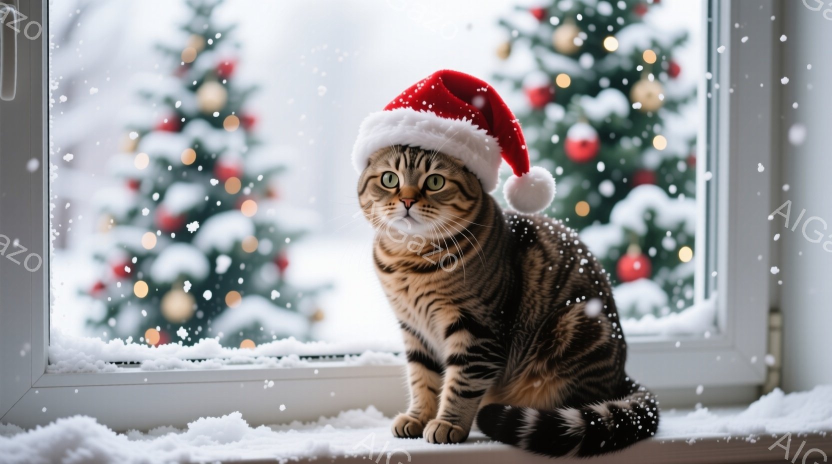 この無料AI生成画像「赤いクリスマスストッキングの中に、縞模様の小さな子猫が丸まって座っています。暖炉の炎がストッキングを照らし、背景にはクリスマスツリーの飾りが見えます。全体的に温かく、居心地の良い、クリスマスの雰囲気が漂っています。」は、2025年10月22日に作成されました。 サイズは 1664×928px の高解像度で、商用利用も可能なフリー素材として提供しています。