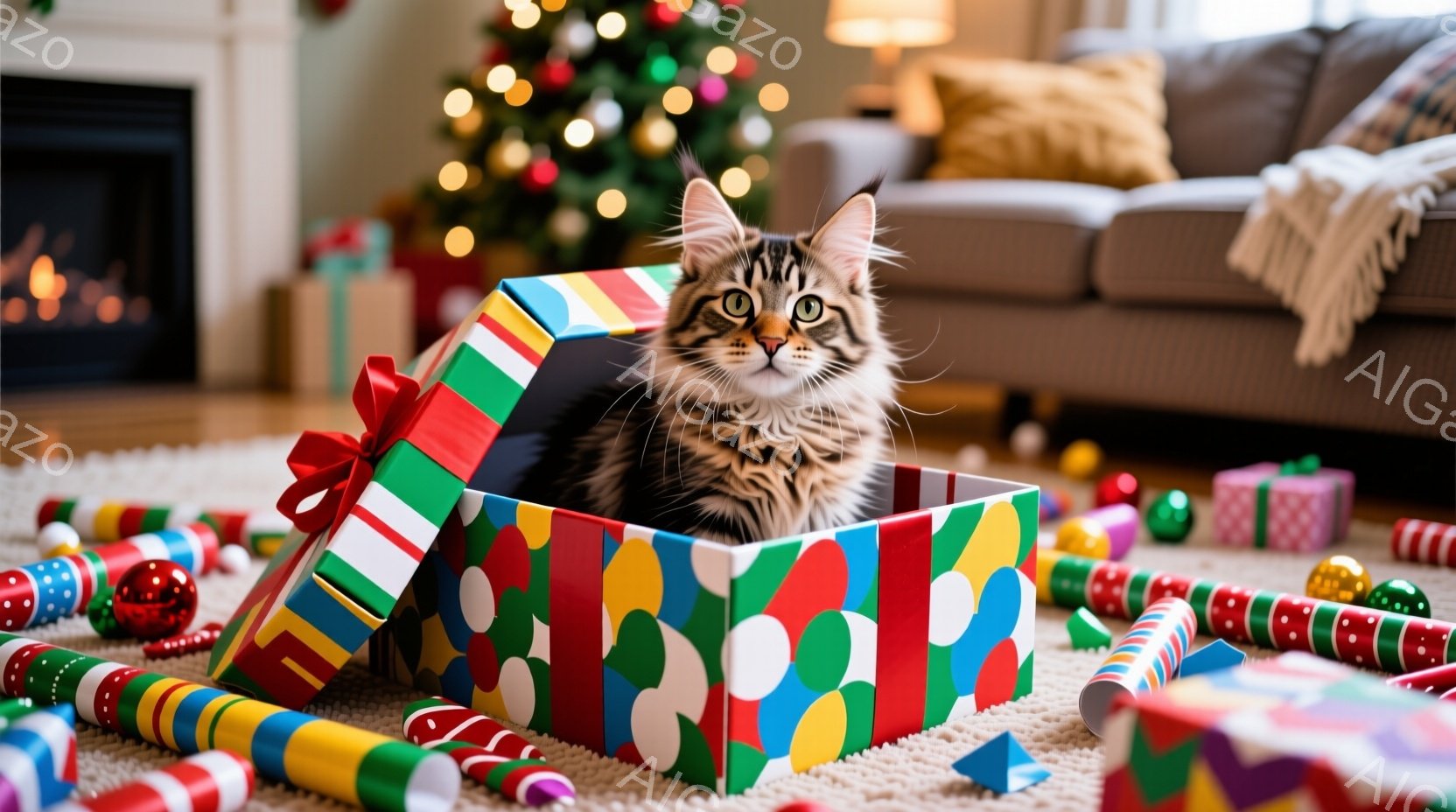 この無料AI生成画像「雪が降る家の玄関に、角のある縞模様の猫が立っている。猫は正面を見ており、自信に満ちた表情をしている。背景にはクリスマスリース、点灯したランタン、そして雪景色が広がり、暖かい冬の雰囲気を醸し出している。」は、2025年10月22日に作成されました。 サイズは 1664×928px の高解像度で、商用利用も可能なフリー素材として提供しています。