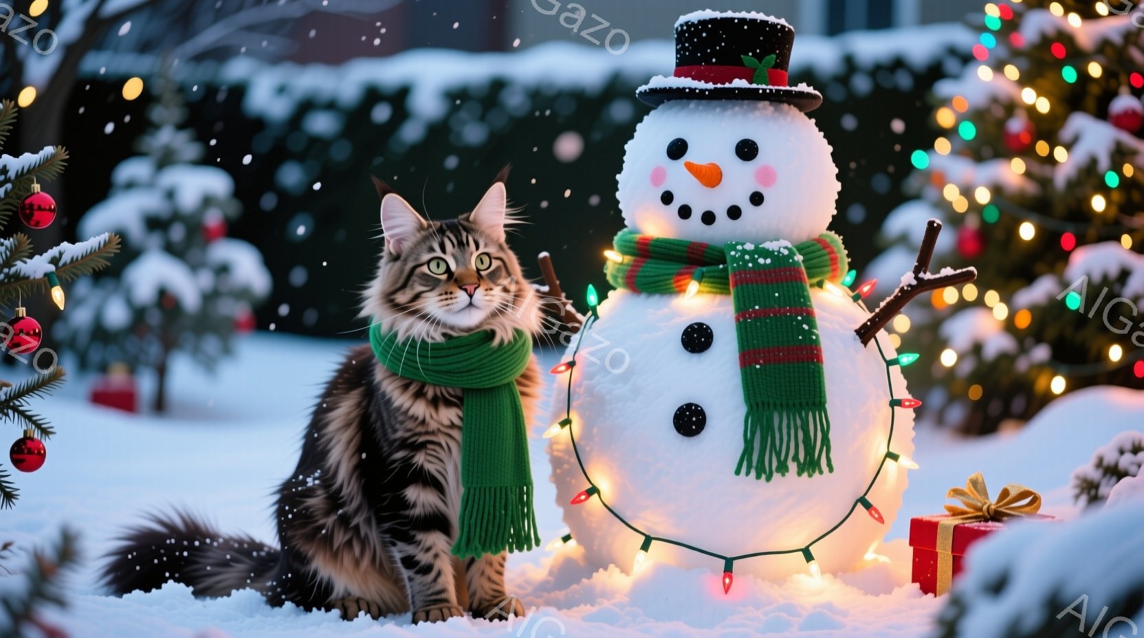 この無料AI生成画像「長毛の猫が、クリスマスツリーを背景に、木製のロッキングチェアにゆったりとくつろいでいます。猫は灰色の縞模様で、白い足と胸元を持ち、リラックスした表情で目を細めています。ロッキングチェアには赤と緑のチェック柄のブランケットが掛けられており、背景のぼやけたクリスマスツリーの光が暖かく、穏やかな雰囲気を醸し出しています。」は、2025年10月22日に作成されました。 サイズは 1664×928px の高解像度で、商用利用も可能なフリー素材として提供しています。