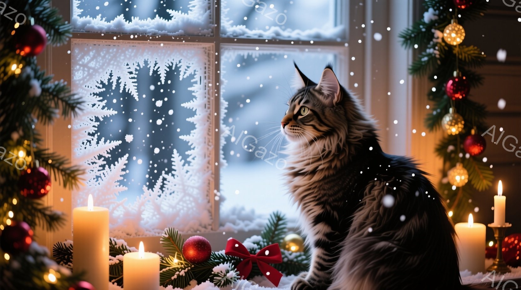この無料AI生成画像「長い毛並みの猫が、緑色のエルフの衣装を着てプレゼントの山に登っています。猫は少し驚いたような表情で前を見つめており、プレゼントには赤と白の大きなリボンが付いています。背景にはクリスマスツリーが飾られ、暖炉の火が灯っており、全体的に暖かくお祝いムードに満ちています。」は、2025年10月22日に作成されました。 サイズは 1664×928px の高解像度で、商用利用も可能なフリー素材として提供しています。