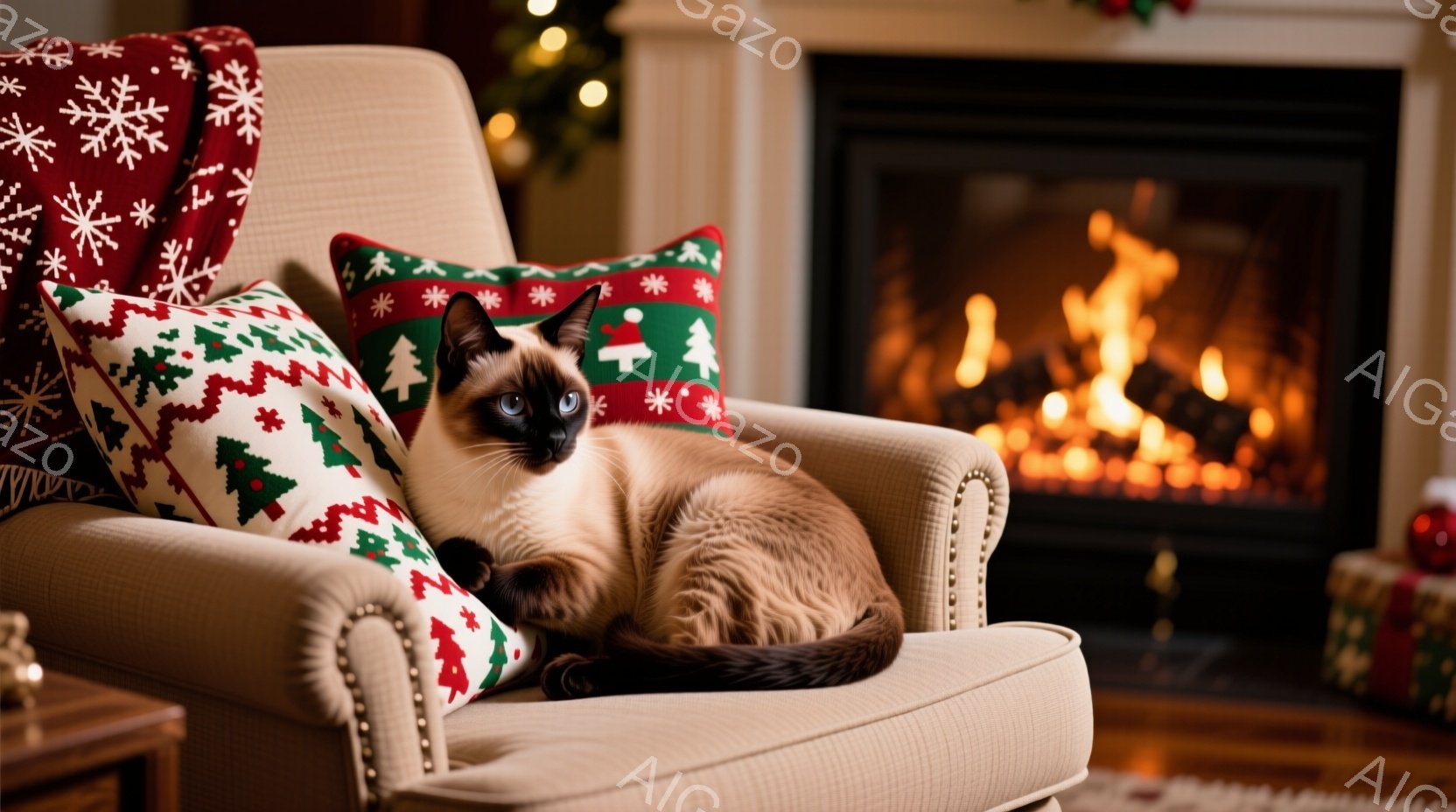 この無料AI生成画像「クリーム色の毛皮の縁取りが付いた赤いマントを羽織り、赤いリボンで飾られた、シロクマのような毛並みの猫が雪の屋根の上に座っています。背景には、クリスマスライトで飾られた建物と木々が広がり、薄暗い青色の空が広がっています。全体として、雪景色の中、クリスマスの雰囲気を楽しむ猫の愛らしい姿が描かれています。」は、2025年10月22日に作成されました。 サイズは 1664×928px の高解像度で、商用利用も可能なフリー素材として提供しています。