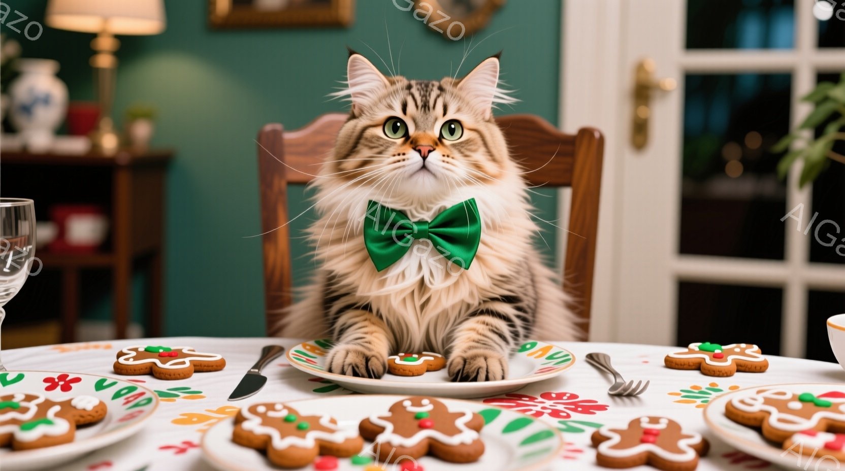 この無料AI生成画像「長い毛並みの灰色の猫がロッキングチェアにゆったりと座っています。背景にはクリスマスツリーがぼんやりと見え、いくつかのキャンドルが暖かく光っています。全体的に、穏やかでリラックスした冬の雰囲気が漂っています。」は、2025年10月23日に作成されました。 サイズは 1664×928px の高解像度で、商用利用も可能なフリー素材として提供しています。
