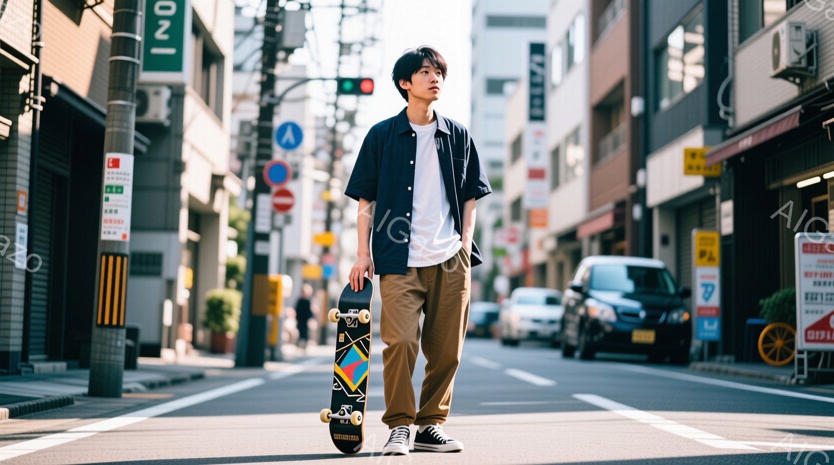 この無料AI生成画像「若い男性がスケートボードを持ち、横断歩道に立っている。彼は白いTシャツの上に濃い青色のジャケットを羽織り、黒いパンツを履いている。背景には、歩行者や車両が通り過ぎる都市の通り、そして様々な道路標識や建物が見える。」は、2025年10月23日に作成されました。 サイズは 1664×928px の高解像度で、商用利用も可能なフリー素材として提供しています。