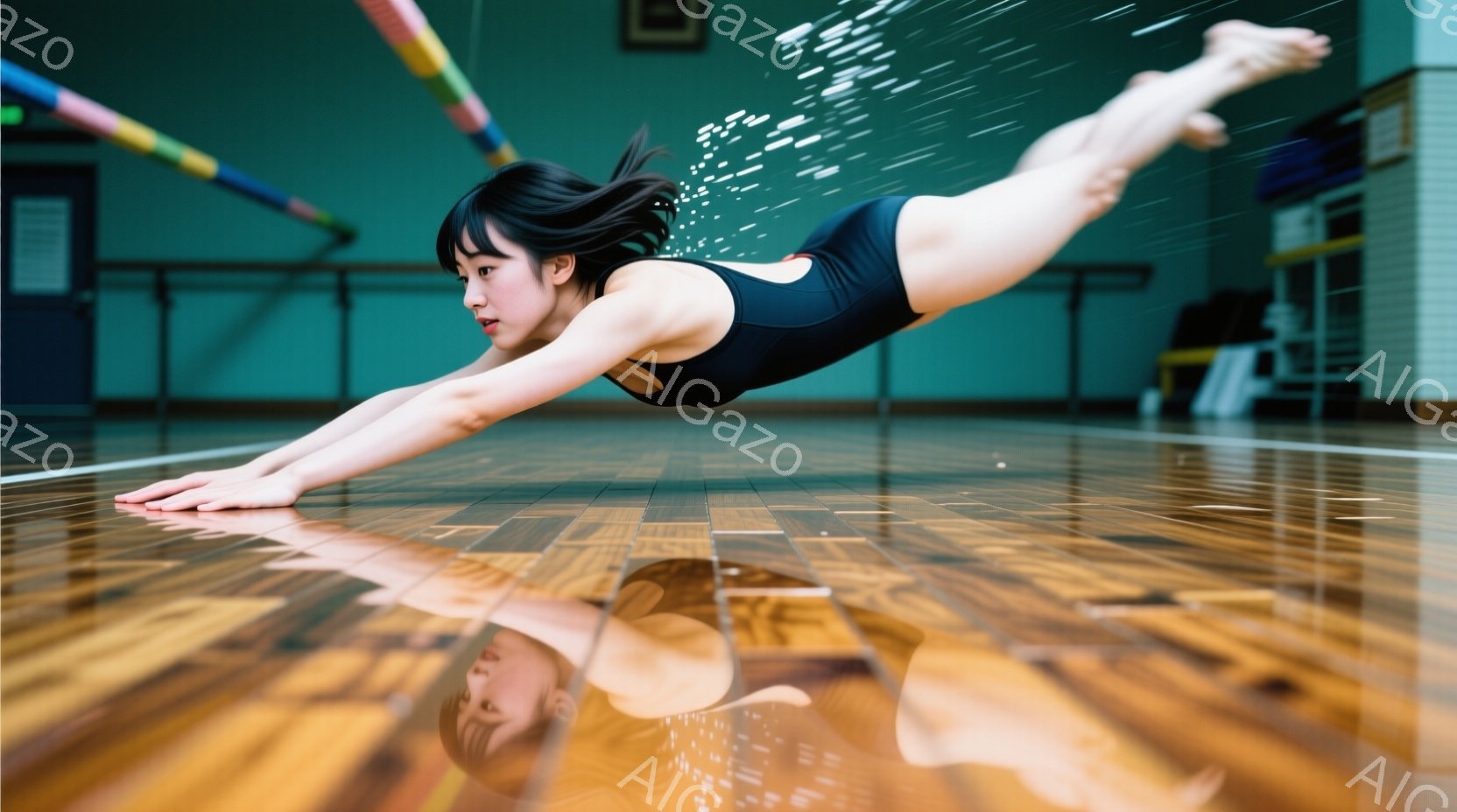この無料AI生成画像「屋内バドミントンコートで、黒いTシャツを着た若い女性が映っています。彼女はネットに手を置き、やや真剣な表情でカメラを見ています。背景は緑色の壁と木の床で、天井にはバスケットゴールが見えます。」は、2025年10月23日に作成されました。 サイズは 1664×928px の高解像度で、商用利用も可能なフリー素材として提供しています。
