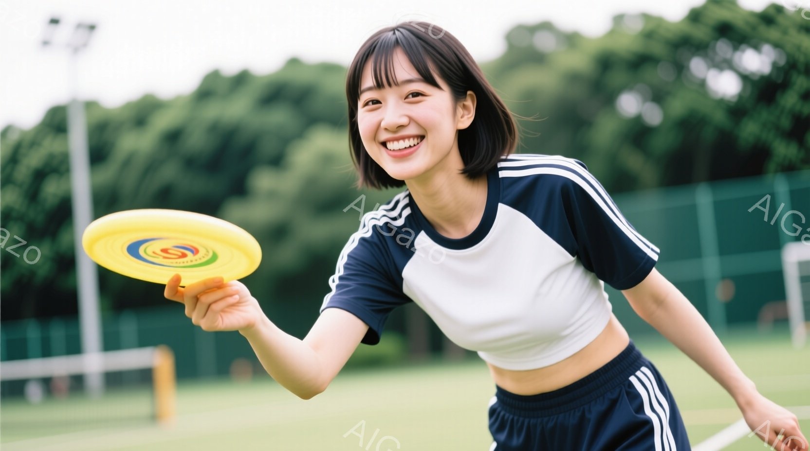 この無料AI生成画像「制服を着た若い女性が、青い空を背景に空中でディスクを投げようとしています。彼女は紺色のプリーツスカートと白いブラウス、赤いリボンネクタイを着用しており、髪はポニーテールに結ばれています。躍動感のある姿勢と表情から、楽しさと活気が伝わってきます。」は、2025年10月23日に作成されました。 サイズは 1664×928px の高解像度で、商用利用も可能なフリー素材として提供しています。