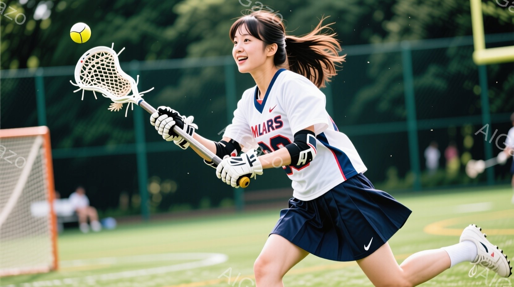 この無料AI生成画像「ラクロスをする若い女性が写っています。彼女は白いユニフォームに紺色の縁取りがあり、「12」の数字が大きくプリントされています。明るい笑顔を浮かべ、ラクロススティックを肩に担ぎ、自信に満ちた姿勢でカメラを見つめています。」は、2025年10月23日に作成されました。 サイズは 1664×928px の高解像度で、商用利用も可能なフリー素材として提供しています。