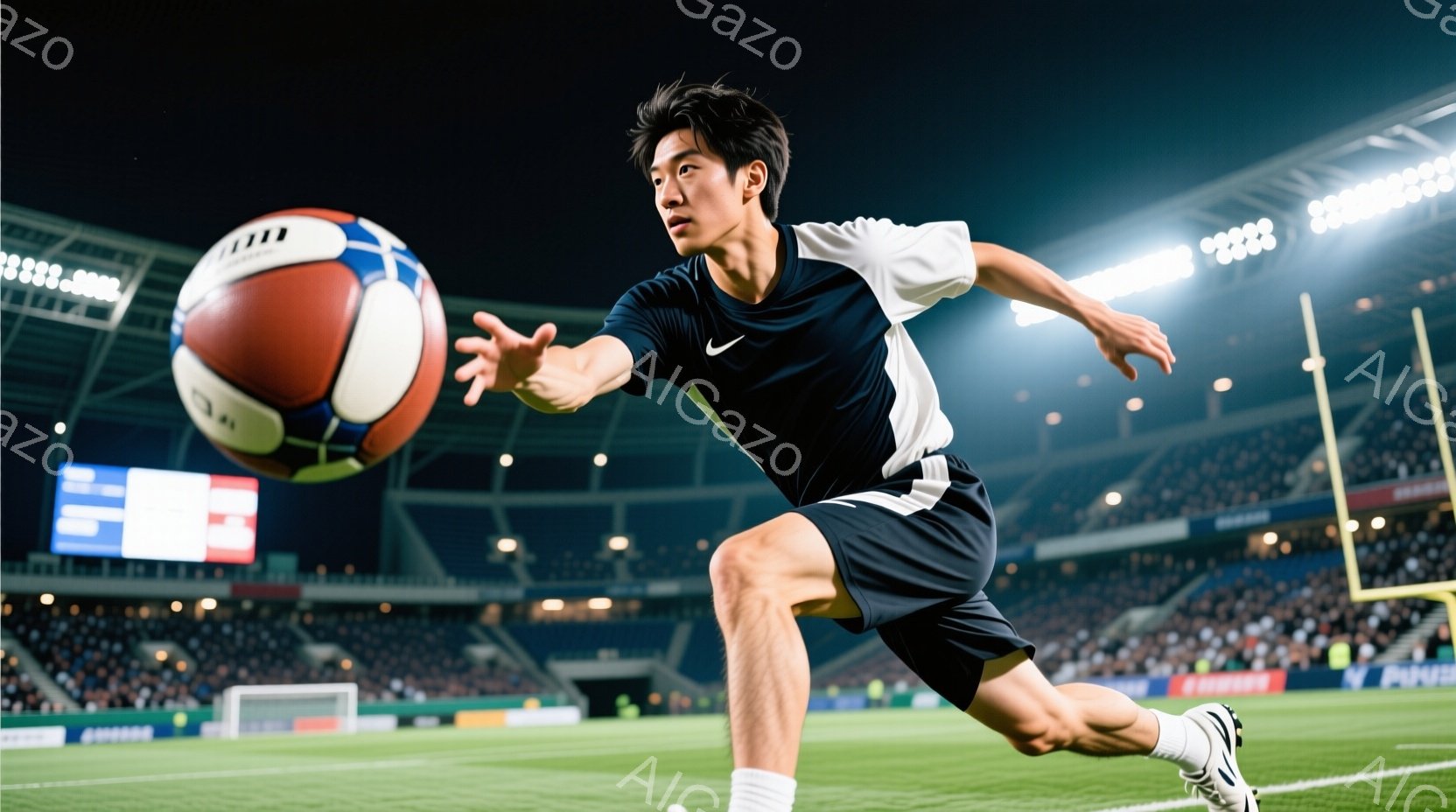この無料AI生成画像「陸上競技場で疾走する男性が写っている。彼は白いタンクトップに黒いショートパンツ、白いソックスとシューズを着用し、黒髪を短く整えている。背景には緑の芝生とトラック、遠くには木々が見え、晴天の下で活気のある雰囲気を感じさせる。」は、2025年10月23日に作成されました。 サイズは 1664×928px の高解像度で、商用利用も可能なフリー素材として提供しています。
