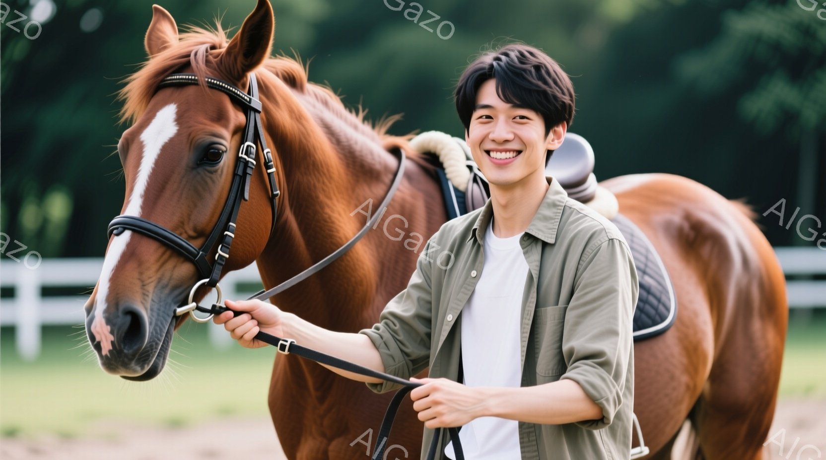 この無料AI生成画像「栗色の馬が競馬場で疾走している様子が捉えられています。騎手は紺色の半袖シャツと白いズボンを着用し、集中した表情で馬を駆けています。背景には緑豊かな芝生と観客席が見え、晴天の下、活気あふれる競馬場の雰囲気が伝わってきます。」は、2025年10月23日に作成されました。 サイズは 1664×928px の高解像度で、商用利用も可能なフリー素材として提供しています。