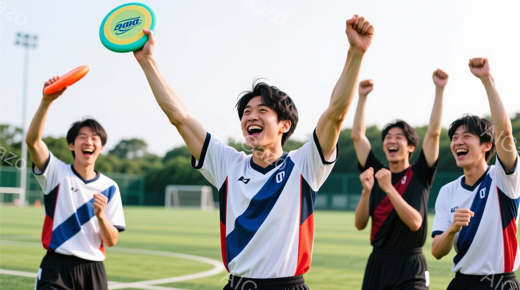 この無料AI生成画像「夕焼けを背景に、若い男性がフリスビーを投げている姿が捉えられています。白のTシャツと黒の短パン姿で、髪は短く、少し無表情な顔つきで、フリスビーに向かって腕を伸ばしています。背景には緑豊かな木々とサッカーゴールが見え、空はオレンジと赤のグラデーションで、穏やかでスポーツを楽しむ雰囲気を感じさせます。」は、2025年10月23日に作成されました。 サイズは 1664×928px の高解像度で、商用利用も可能なフリー素材として提供しています。