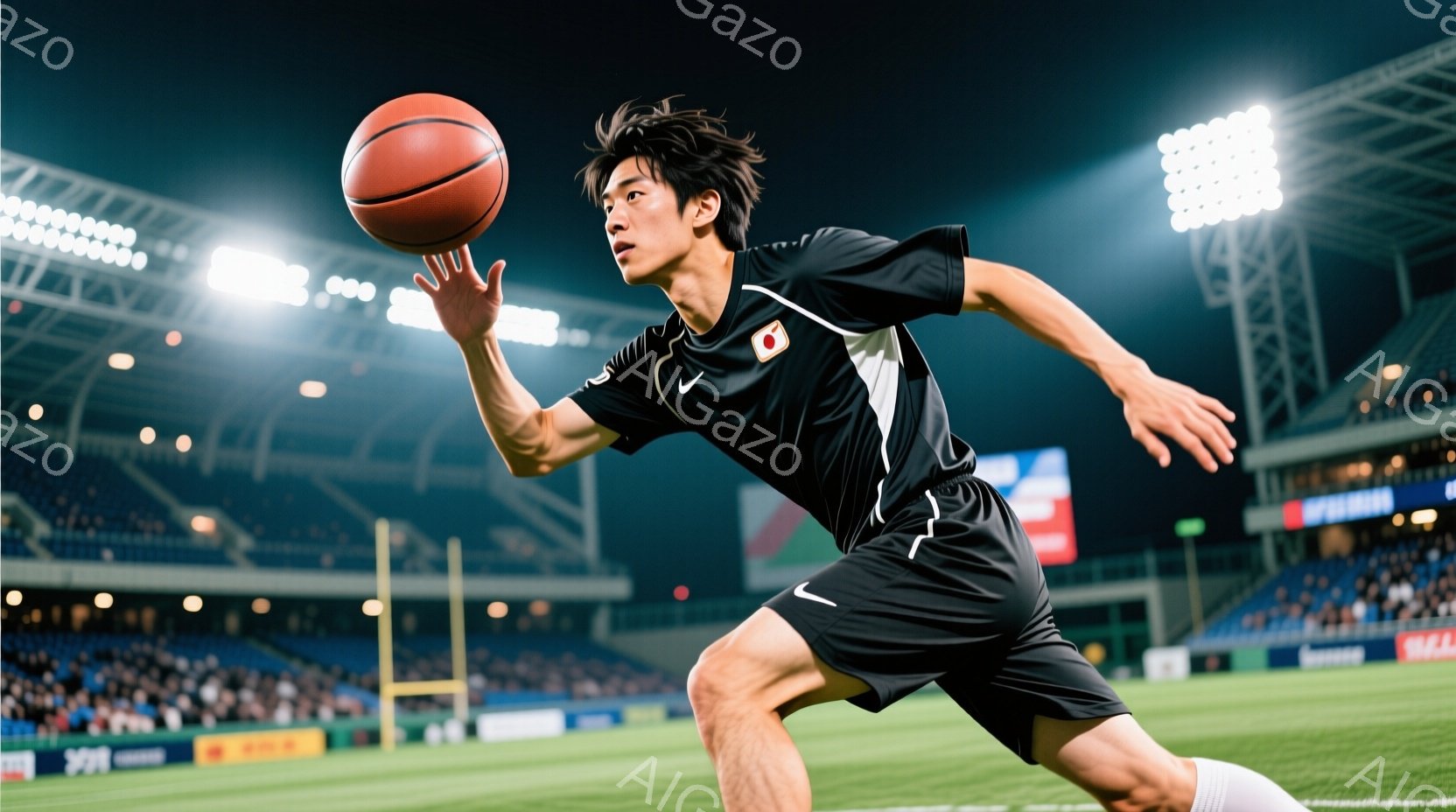 この無料AI生成画像「競技場を疾走する男性ランナーが写っている。黒のランニングウェアに白のラインが入っており、短髪で引き締まった表情をしている。背景には緑の芝生と観客席、遠くには木々が見え、晴天の下で運動している様子が伝わる。」は、2025年10月23日に作成されました。 サイズは 1664×928px の高解像度で、商用利用も可能なフリー素材として提供しています。