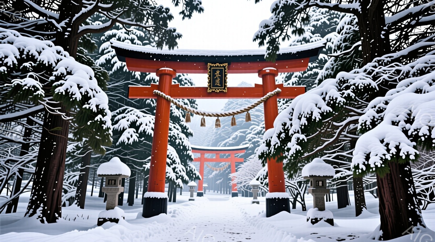 この無料AI生成画像「鬱蒼とした森林の中に、茅葺屋根の伝統的な建物が佇んでいます。背景には雪を抱いた富士山がそびえ立ち、自然の雄大さと静寂が感じられます。石畳の道と庭石が建物を囲み、古風で神聖な雰囲気を醸し出しています。」は、2025年10月23日に作成されました。 サイズは 1664×928px の高解像度で、商用利用も可能なフリー素材として提供しています。