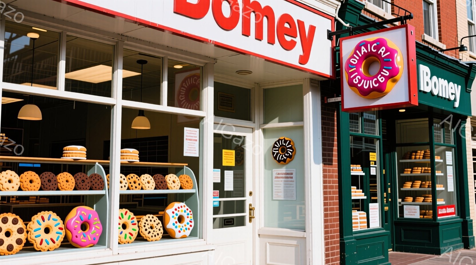 この無料AI生成画像「明るい緑色の外観を持つドーナツ屋「Guukory」の店構えです。ショーケースにはカラフルなドーナツが並び、美味しそうな香りが漂ってくるようです。店の正面にはGuukoryのロゴが入った看板が設置され、可愛らしい雰囲気を醸し出しています。」は、2025年10月23日に作成されました。 サイズは 1664×928px の高解像度で、商用利用も可能なフリー素材として提供しています。