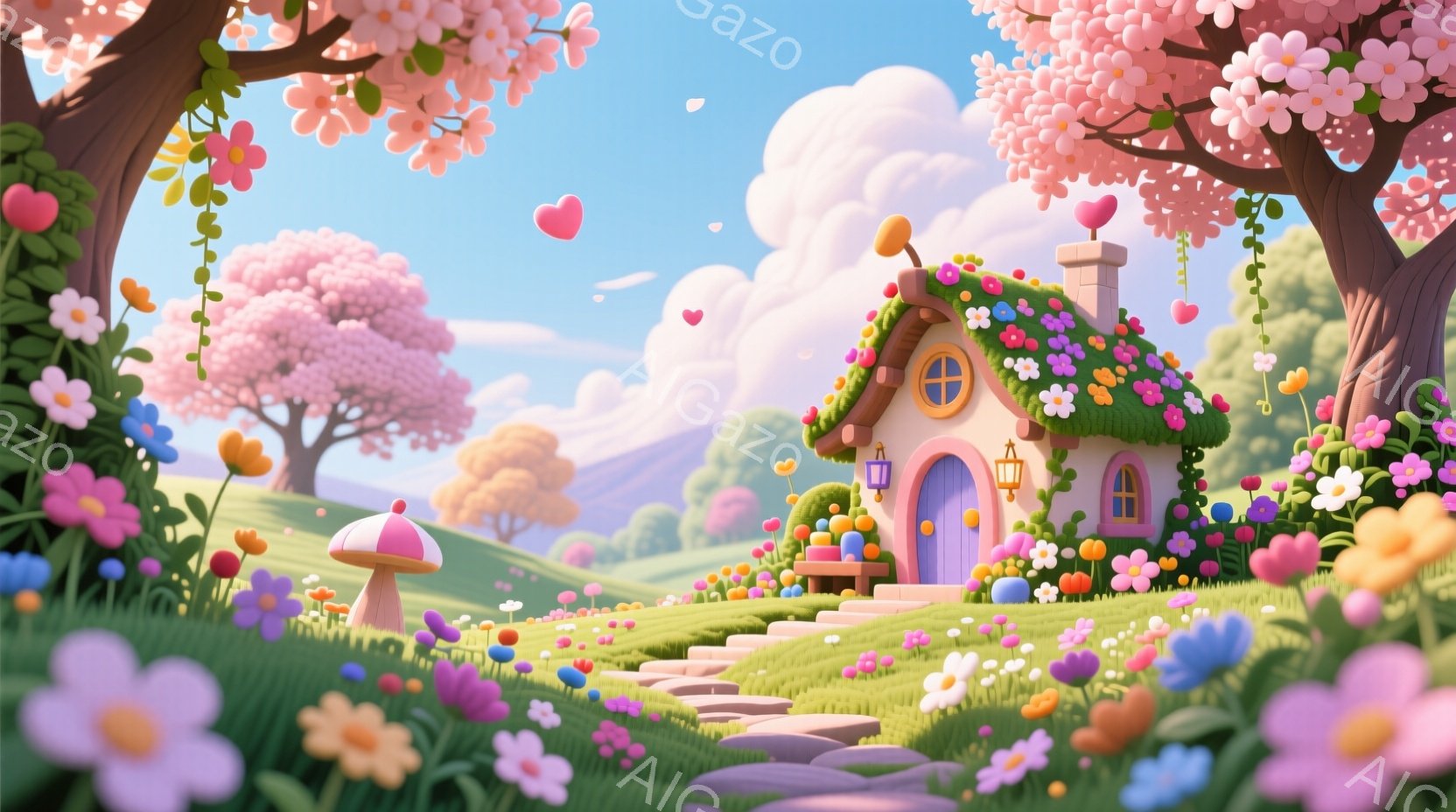 この無料AI生成画像「カラフルなプラスチックのおもちゃのような街並みが広がり、空には綿菓子のようなピンクと白の雲が浮かんでいます。雲には可愛らしい笑顔が描かれており、まるで生きているようです。背景は明るい青空で、全体的に夢のような、遊び心溢れる雰囲気です。」は、2025年10月23日に作成されました。 サイズは 1664×928px の高解像度で、商用利用も可能なフリー素材として提供しています。