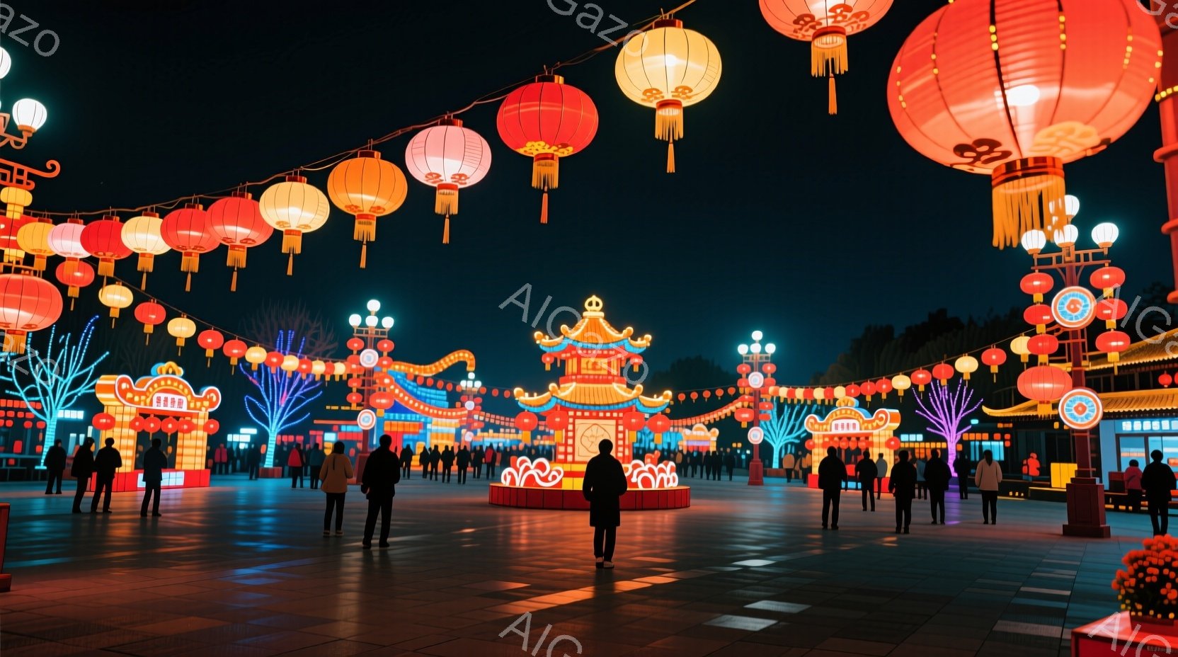 この無料AI生成画像「広場には多くの人々が散策しており、ほとんどがカジュアルな冬物の上着を着ています。背景には、中国風の装飾が施された建物と、赤やオレンジ色の提灯が空中に並び、華やかな雰囲気を醸し出しています。夜の空の下、建物や提灯からの光が広場全体を暖かく照らし、お祭りや祝祭のような賑やかなムードを演出しています。」は、2025年10月23日に作成されました。 サイズは 1664×928px の高解像度で、商用利用も可能なフリー素材として提供しています。