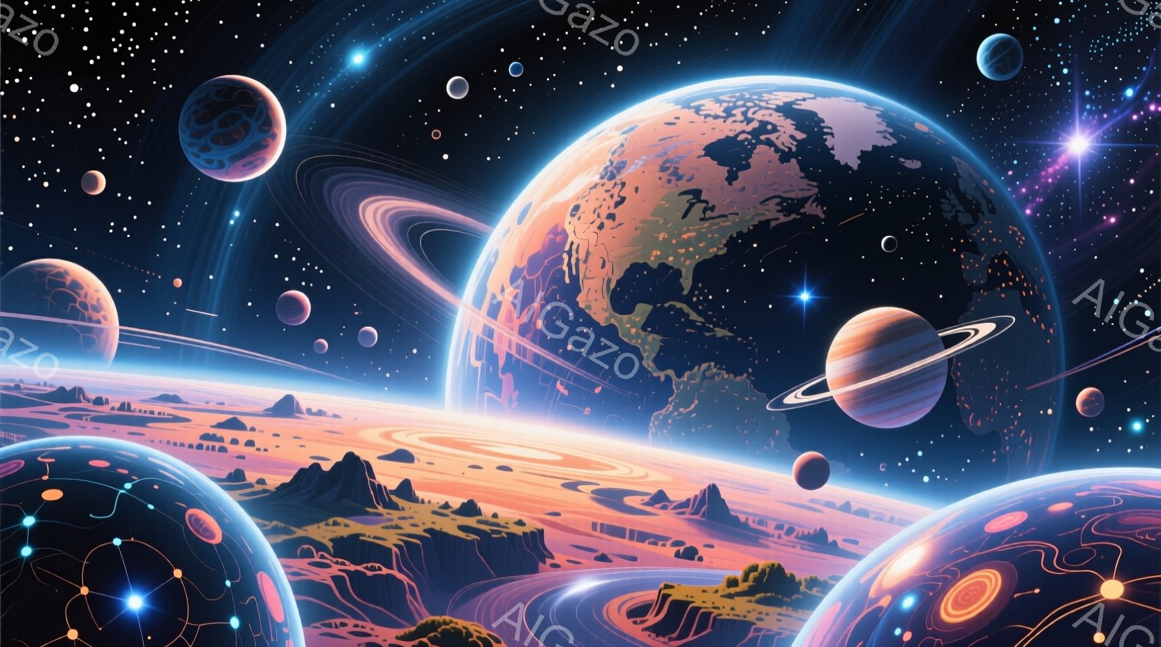 この無料AI生成画像「宇宙を旅するスペースシップが描かれた美麗な天体画像。地球や太陽、星々といっぱいで彩色豊かに描かれています。宇宙の美しさを表現した作品であり、科学的な精度も見られることから、教育的な画像と言えます。」は、2025年10月23日に作成されました。 サイズは 1664×928px の高解像度で、商用利用も可能なフリー素材として提供しています。