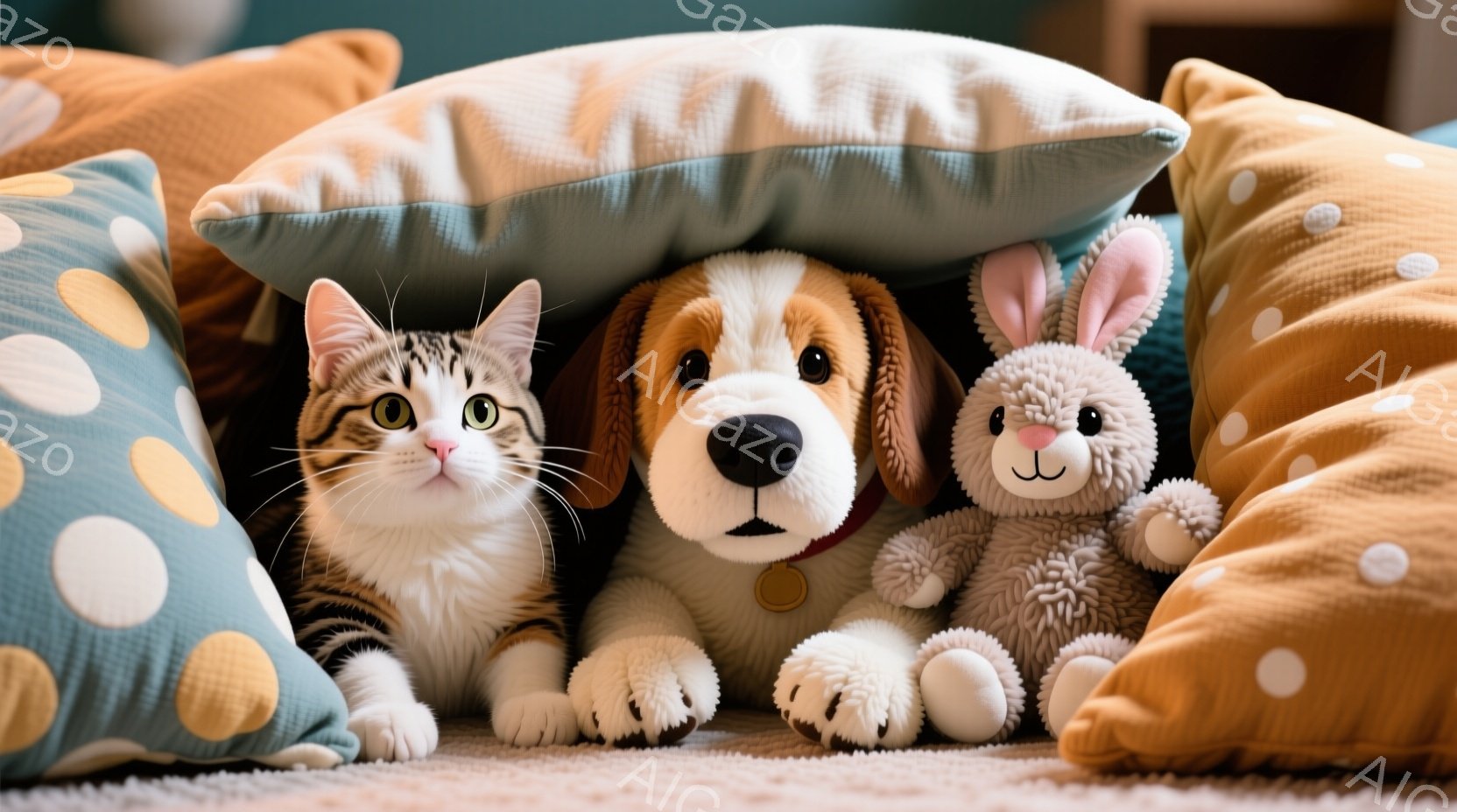 この無料AI生成画像「ハムスターとハリネズミが、赤、青、黄色で構成された筒状の容器の中にいます。ハムスターは明るい表情でカメラに向かって微笑み、ハリネズミは少し恥ずかしそうに微笑んでいます。背景には、さまざまなカラフルなおもちゃが見え、全体的に陽気で楽しい雰囲気が漂っています。」は、2025年10月22日に作成されました。 サイズは 1664×928px の高解像度で、商用利用も可能なフリー素材として提供しています。