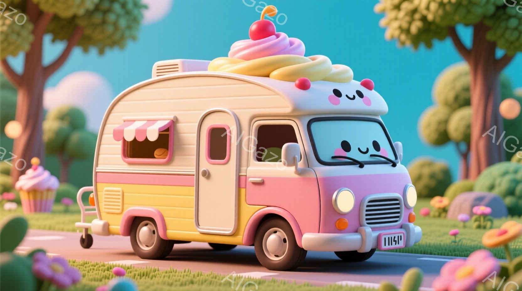 この無料AI生成画像「明るい緑色のクラシックカーを運転する、ふわふわの茶色のキツネが描かれています。キツネは嬉しそうに笑っており、ピンク色のストライプとドーナツで飾られた遊び心のあるコースを走っています。背景には、パステルカラーの建物と空があり、全体的に遊び心があり、夢のような雰囲気が漂っています。」は、2025年10月23日に作成されました。 サイズは 1664×928px の高解像度で、商用利用も可能なフリー素材として提供しています。