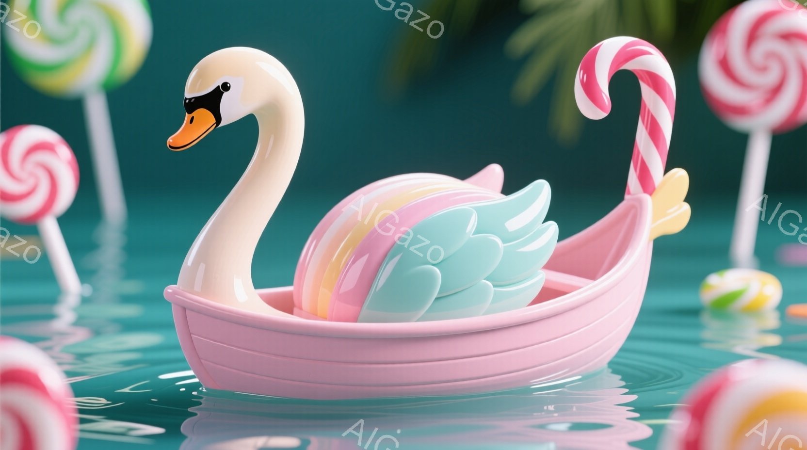 この無料AI生成画像「明るい水面の上に、虹色に輝くユニコーンの形をしたボートが浮かんでいます。その先端にはキャンディが突き出ており、まるで夢のような可愛らしい光景です。背景は緑豊かな自然で、水面に映る光が幻想的な雰囲気を醸し出しています。」は、2025年10月23日に作成されました。 サイズは 1664×928px の高解像度で、商用利用も可能なフリー素材として提供しています。