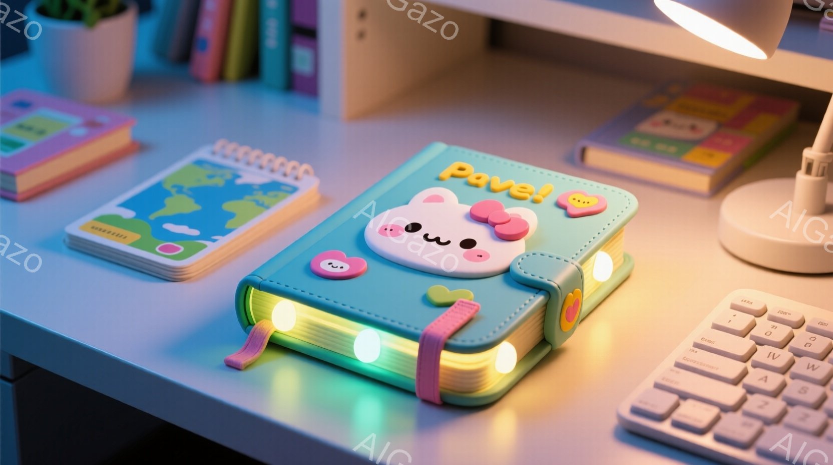 この無料AI生成画像「明るいピンクとターコイズブルーのノートが、クリーム色の机の上に開いています。ノートには可愛らしいイラストが描かれており、蛍光色のしおり紐がついています。背景には、他の本や文房具、そして柔らかな光を放つデスクライトが見え、全体的に若々しく創造的な雰囲気が漂っています。」は、2025年10月23日に作成されました。 サイズは 1664×928px の高解像度で、商用利用も可能なフリー素材として提供しています。
