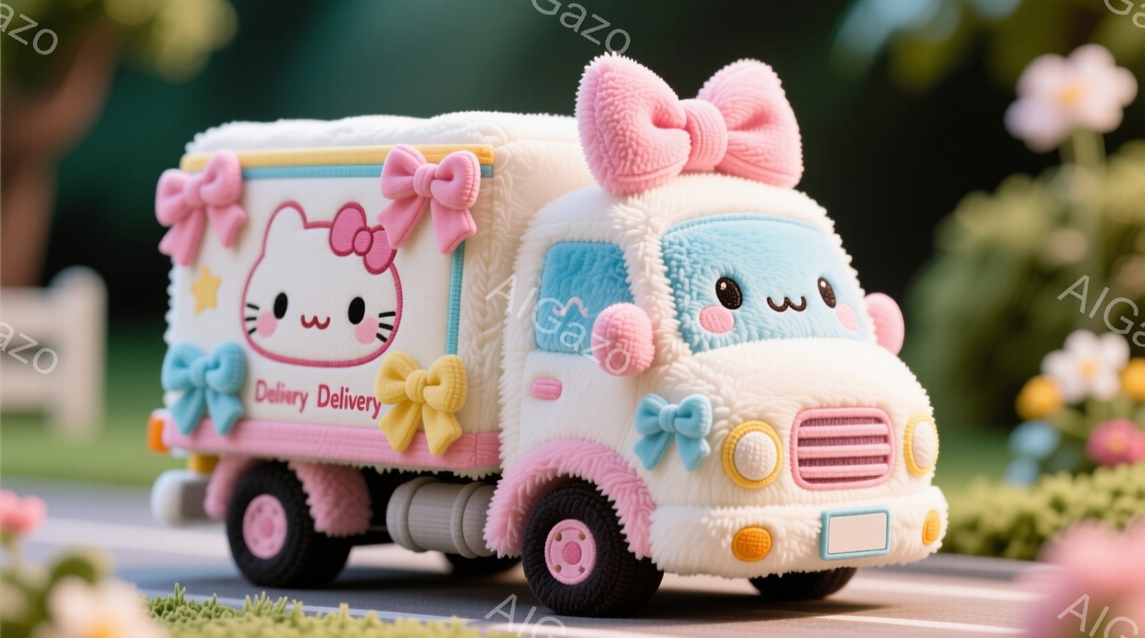 この無料AI生成画像「パステルブルーとピンクのふわふわした質感のトラックのクローズアップです。トラックのキャビンには、大きなリボンとハートが飾られており、ハローキティの顔が描かれています。背景は、ぼやけた緑の芝生とピンクの花が咲く木々で、暖かく、夢のような雰囲気を作り出しています。」は、2025年10月23日に作成されました。 サイズは 1664×928px の高解像度で、商用利用も可能なフリー素材として提供しています。