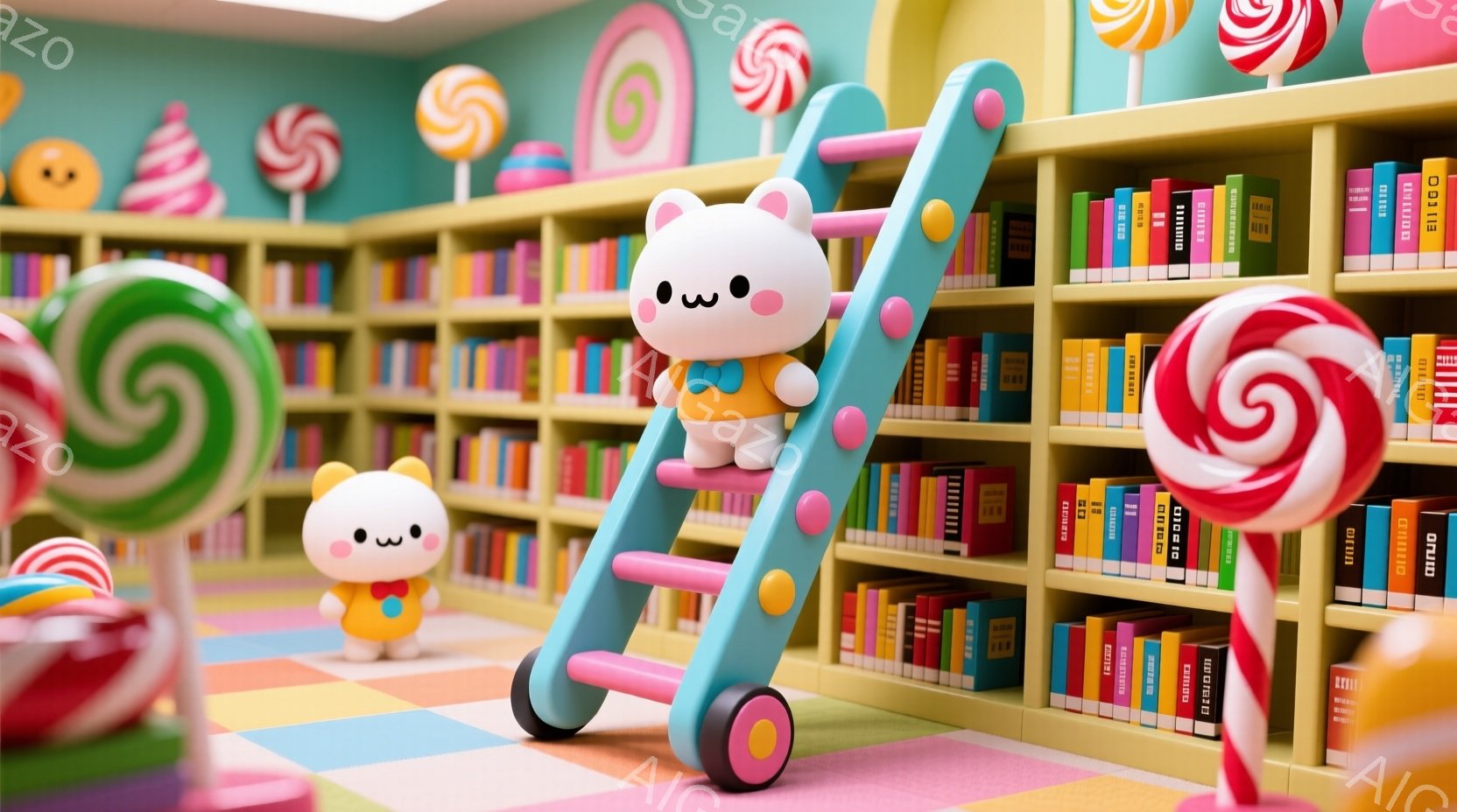 この無料AI生成画像「鮮やかなピンクと紫を基調とした背景に、カラフルなキャンディや積み木、そしてたくさんの本が並んでいます。うさぎのキャラクターがピンクの梯子にもたれかかっており、つぶらな瞳でこちらを見つめています。全体的に、おもちゃ箱をひっくり返したような、遊び心満載で可愛らしい雰囲気です。」は、2025年10月23日に作成されました。 サイズは 1664×928px の高解像度で、商用利用も可能なフリー素材として提供しています。