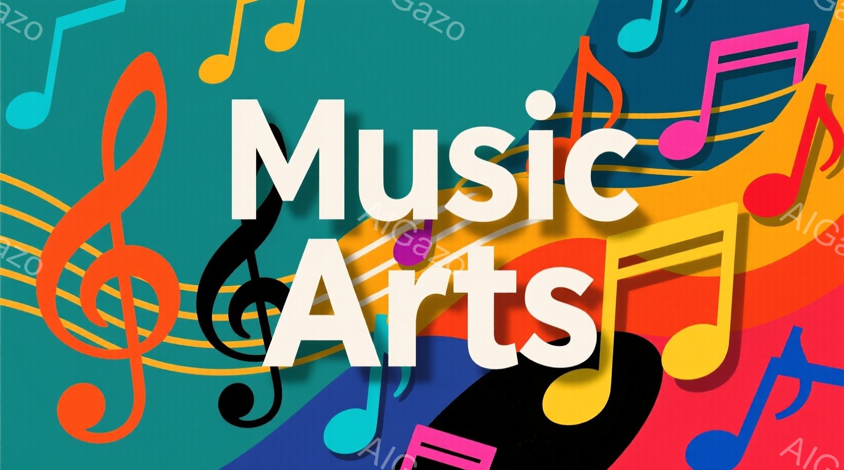 音楽記号のト音記号と「Arts」という文字が重ねられたデザインです。背景は、赤から青へのグラデーションで、音楽的な雰囲気と芸術性を表現しています。シンプルながらも印象的な構図で、音楽やアートに関連するイベントやプロモーションに適しています。