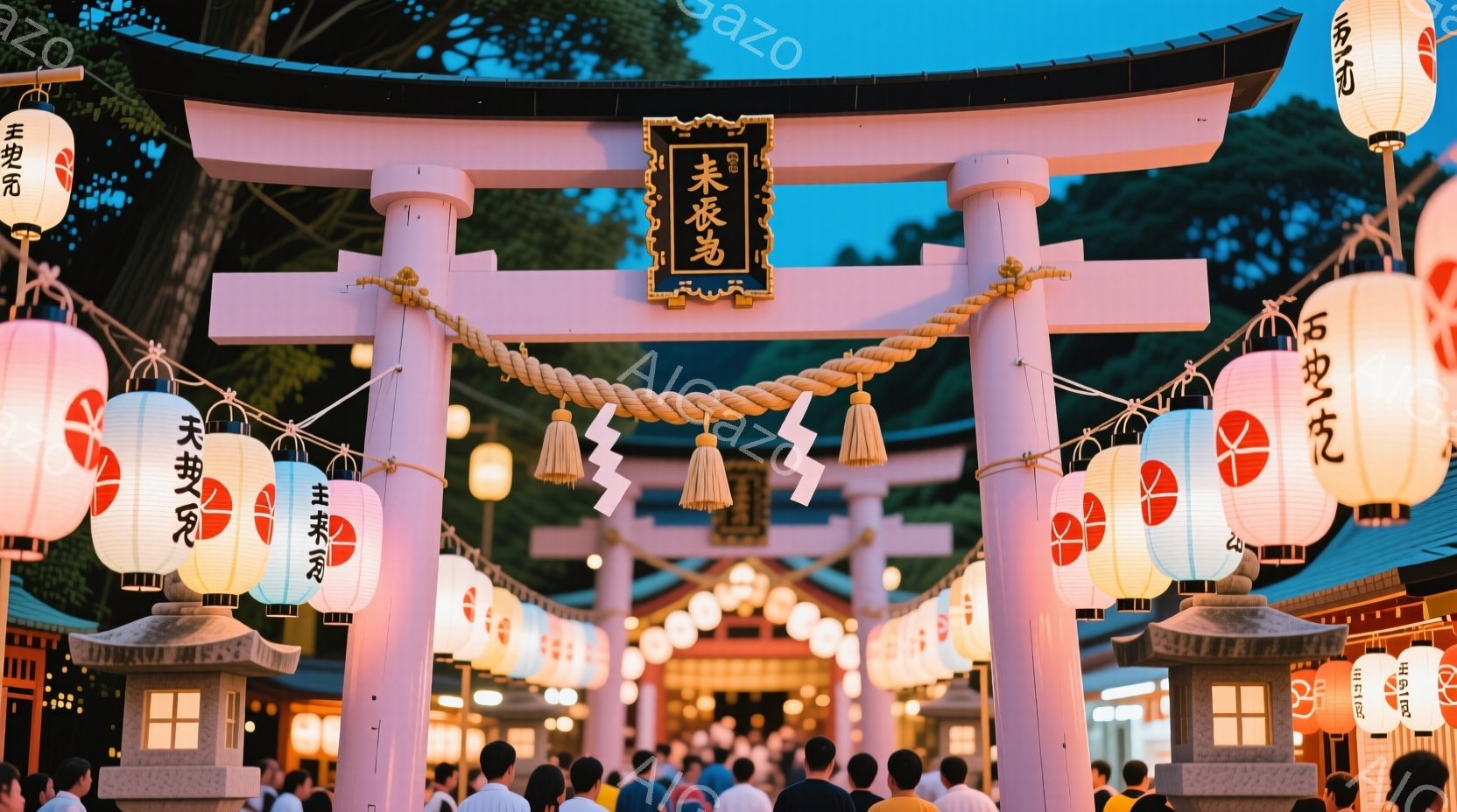 この無料AI生成画像「This image captures a vibrant scene at a temple gate. The focal point is the traditional Japanese lanterns, each displaying different colored lights and decorated with the word "temple" in both English and Japanese characters. These lanterns are suspended above, creating a festive and serene atmosphere that seems to be welcoming visitors. In the background, there's a wooden structure typical of traditional Japanese architecture, enhancing the cultural ambiance of the setting. The overall impression is one of tranquility and cultural richness.」は、2025年10月23日に作成されました。 サイズは 1664×928px の高解像度で、商用利用も可能なフリー素材として提供しています。