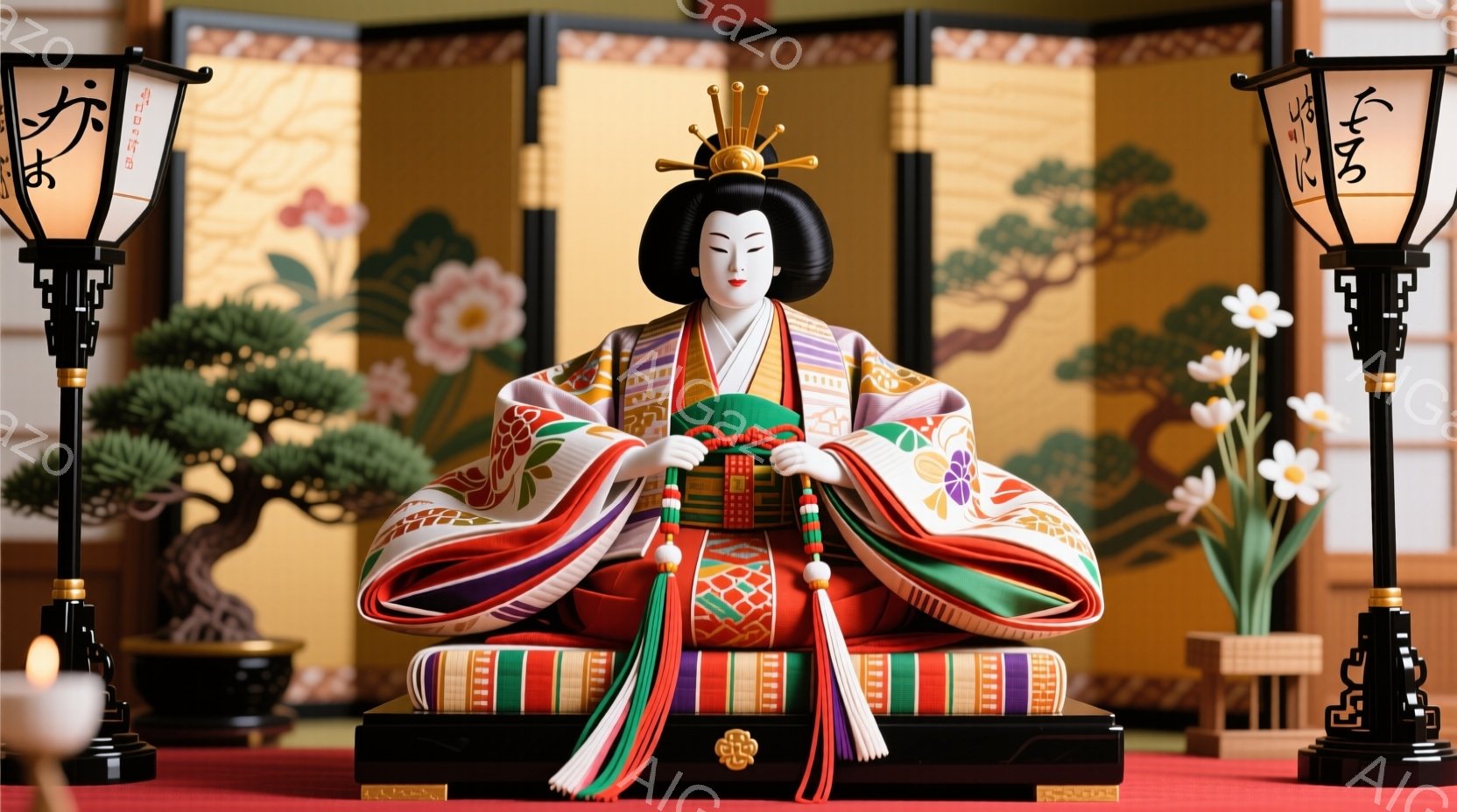 この無料AI生成画像「豪華な十二単をまとった女性の像が二体写っています。彼女たちは落ち着いた表情で、伝統的な日本の衣装を着て、静かに座っています。背景には、赤い敷物、蝋燭、そして花飾りがあり、祭りのような華やかな雰囲気を醸し出しています。」は、2025年10月23日に作成されました。 サイズは 1664×928px の高解像度で、商用利用も可能なフリー素材として提供しています。