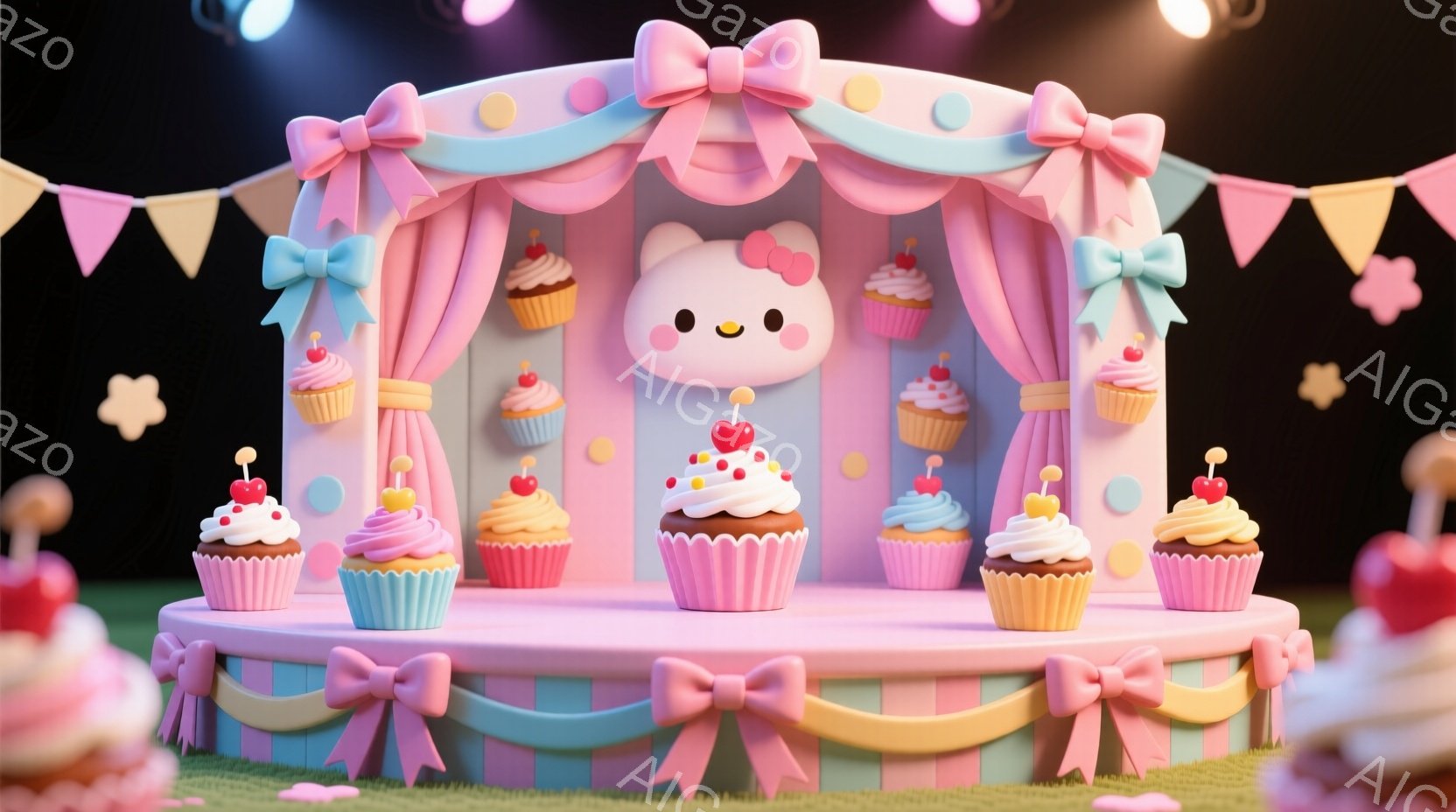 この無料AI生成画像「日本の伝統的な着物を着た、丸みを帯びた可愛らしい人形が三体描かれています。人形たちは鮮やかなピンクと水色の着物を身につけ、金色の髪飾りをつけています。背景にはカラフルなキャンディと渦巻く模様があり、全体的に明るく、お祭りや楽しい雰囲気を醸し出しています。」は、2025年10月23日に作成されました。 サイズは 1664×928px の高解像度で、商用利用も可能なフリー素材として提供しています。