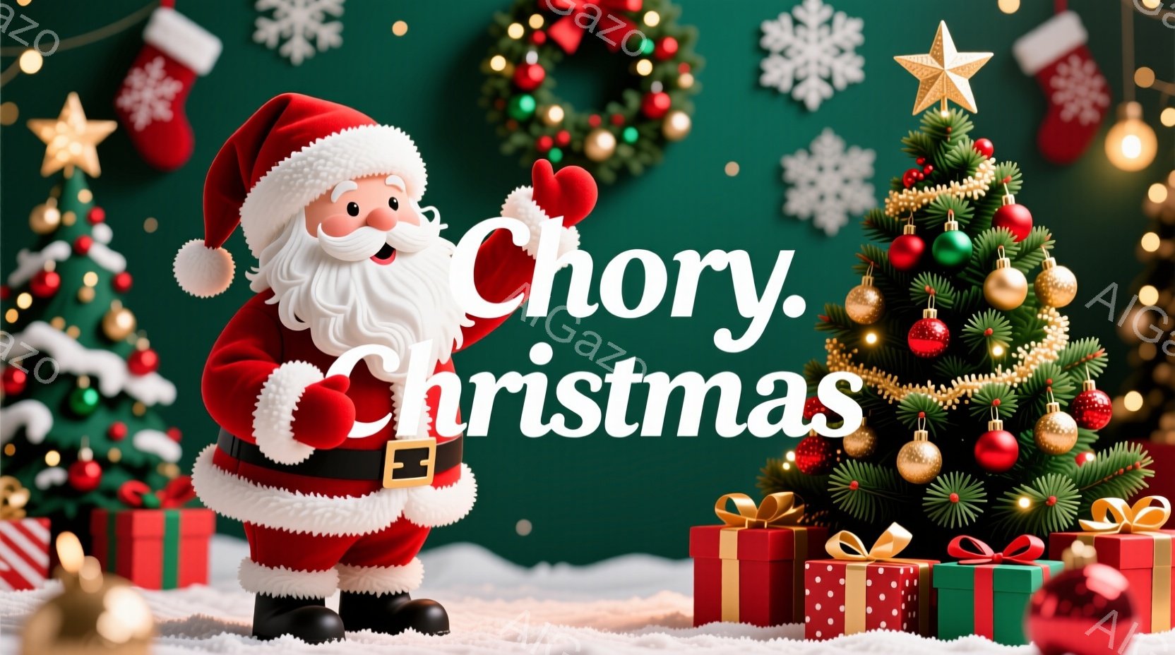 この無料AI生成画像「深緑色の背景に、クリスマスツリーとプレゼントが散りばめられた、華やかなクリスマスシーンです。ツリーには金色の星やオーナメントが飾られ、赤いリボンで彩られたクリスマスリースが浮かんでいます。雪が舞い降り、全体的に暖かく、お祝いムード満点の雰囲気です。」は、2025年10月23日に作成されました。 サイズは 1664×928px の高解像度で、商用利用も可能なフリー素材として提供しています。