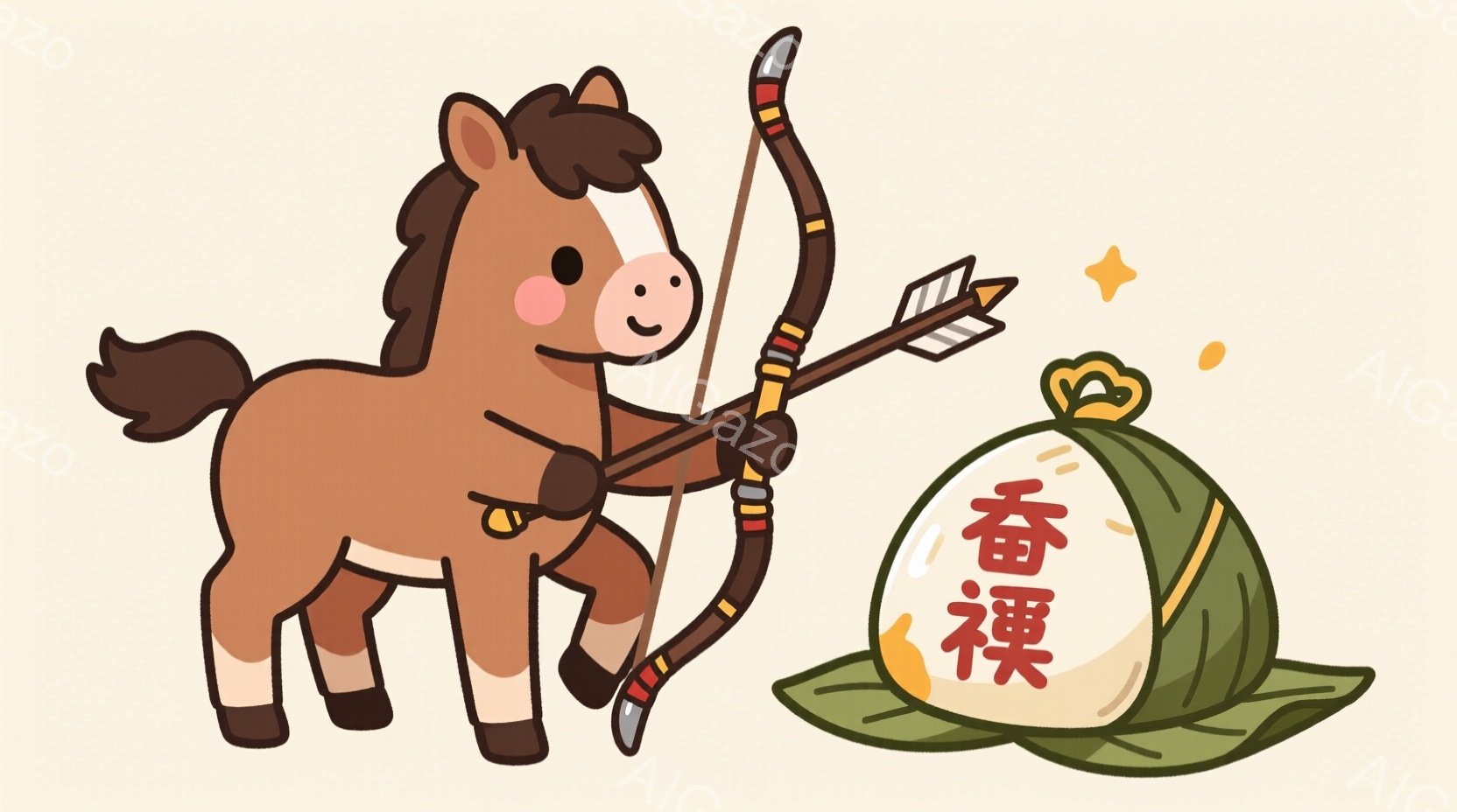 この無料AI生成画像「茶色の馬が弓矢を持ってターゲットに向かって構えているイラストです。ターゲットは緑色の葉の上に置かれた白い円盤で、「輪」という文字が書かれています。全体的に明るく、楽しげな雰囲気で、シンプルで可愛らしいタッチです。」は、2025年10月22日に作成されました。 サイズは 1664×928px の高解像度で、商用利用も可能なフリー素材として提供しています。