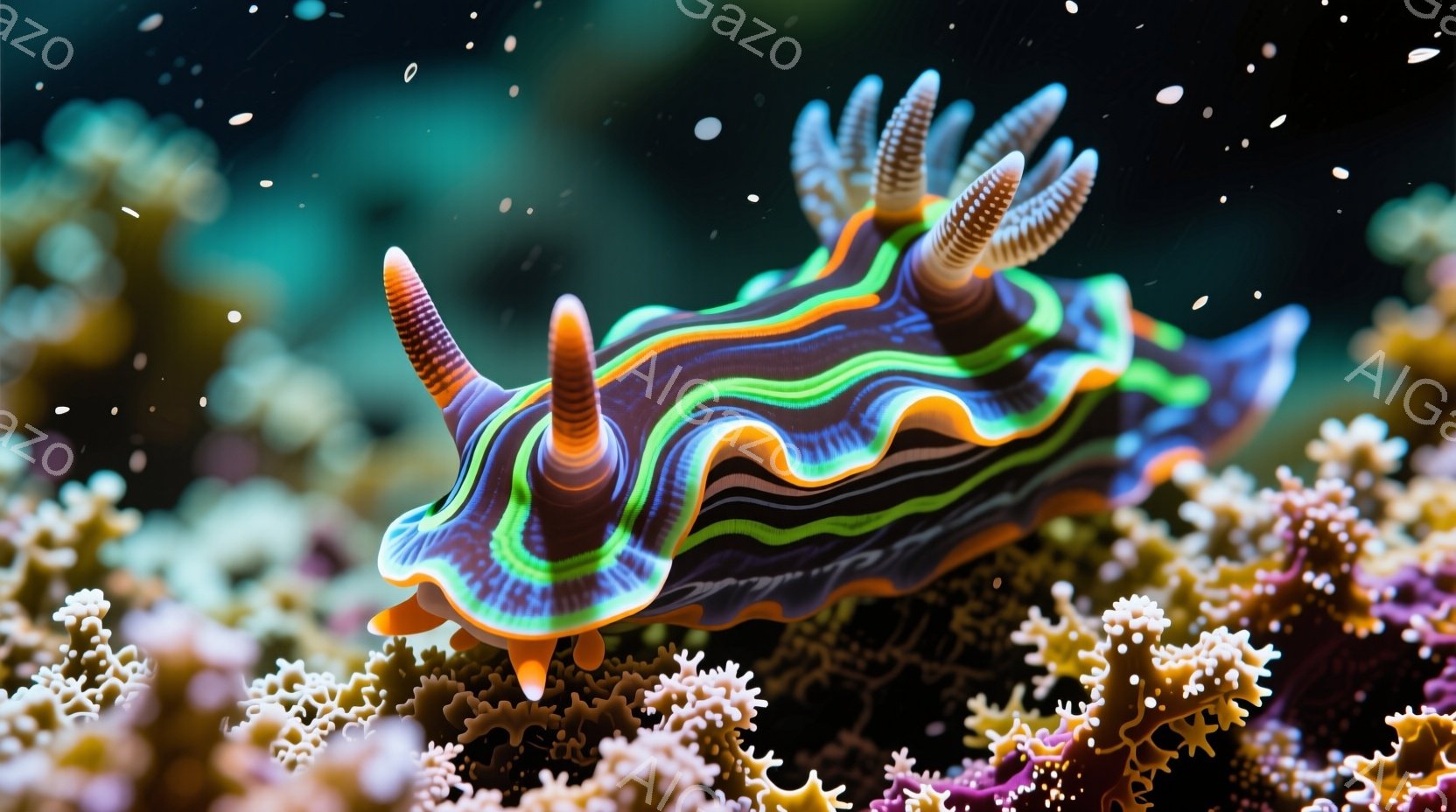 この無料AI生成画像「鮮やかな色彩を持つヒトデのような海中生物が、ピンク色のサンゴ礁の上に佇んでいます。体は濃い青色とオレンジ色の帯模様で覆われ、背中には蛍光色の突起が並び、まるで小さな王冠のようです。背景にはぼやけたサンゴ礁が広がり、深海の静寂と神秘的な雰囲気を醸し出しています。」は、2025年10月23日に作成されました。 サイズは 1664×928px の高解像度で、商用利用も可能なフリー素材として提供しています。
