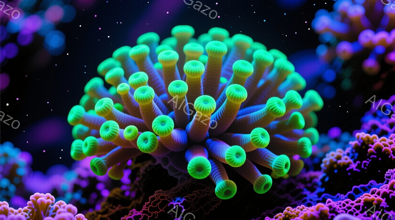 この無料AI生成画像「鮮やかな緑色のサンゴが、暗い背景の中に浮かび上がっています。サンゴは多数の小さな突起で構成され、まるで小さな指のような形状をしています。背景には、紫色のサンゴのぼやけた影が見え、水中の幻想的な雰囲気を醸し出しています。」は、2025年10月23日に作成されました。 サイズは 1664×928px の高解像度で、商用利用も可能なフリー素材として提供しています。