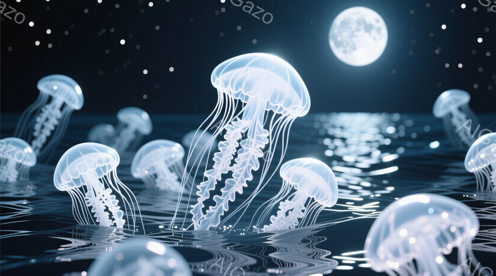この無料AI生成画像「深緑色の背景に、発光するクラゲが複数描かれています。クラゲは半透明で、複雑な模様の触手が特徴的であり、まるで光の筋が伸びているかのようです。全体的に幻想的で、静かで神秘的な雰囲気が漂っています。」は、2025年10月23日に作成されました。 サイズは 1664×928px の高解像度で、商用利用も可能なフリー素材として提供しています。