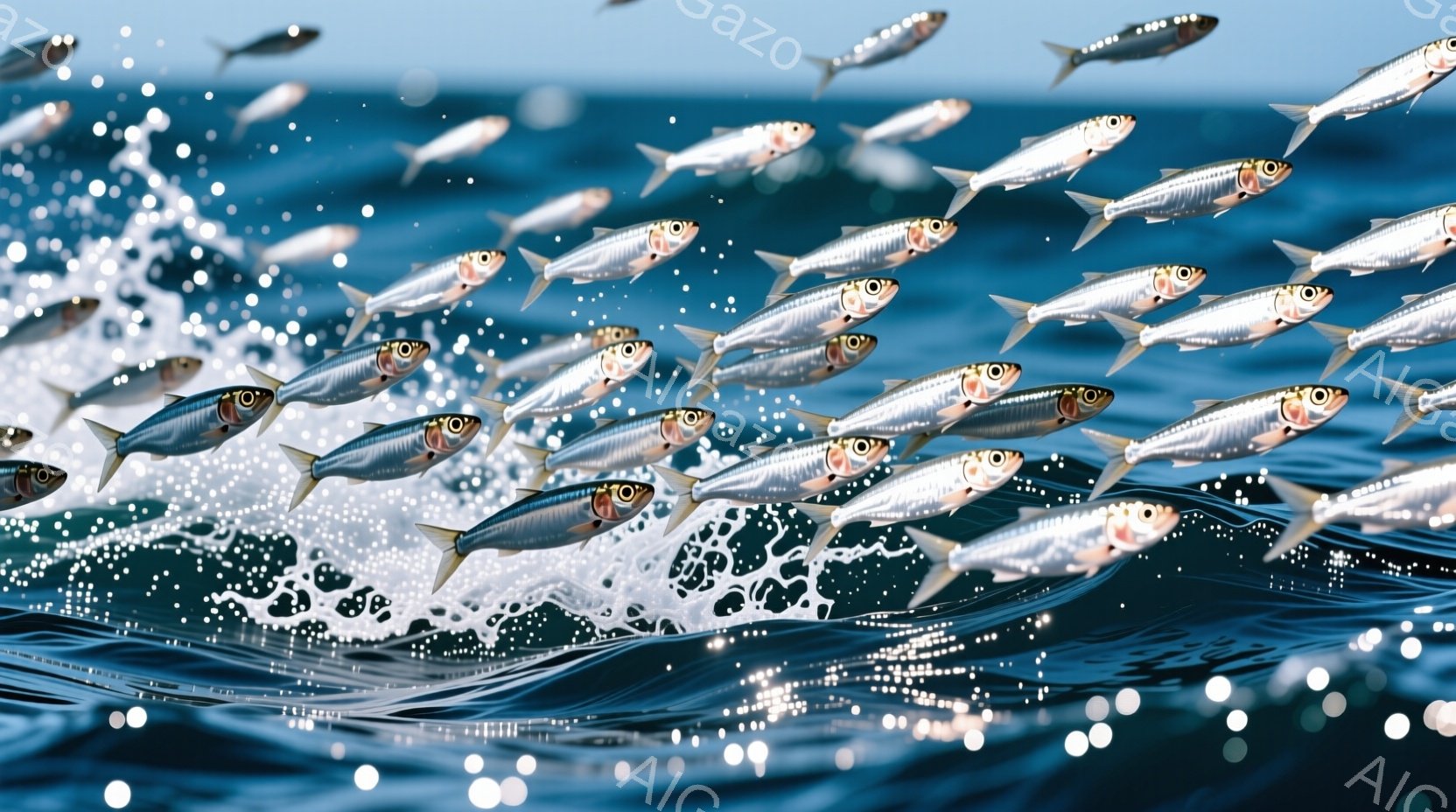 この無料AI生成画像「多数のイワシが群れをなし、波間を高速で泳いでいる様子が捉えられています。光が水面で反射し、キラキラと輝き、躍動感あふれるシーンを演出しています。紺碧の海と白い波しぶきが、イワシの銀色の体を一層際立たせています。」は、2025年10月23日に作成されました。 サイズは 1664×928px の高解像度で、商用利用も可能なフリー素材として提供しています。