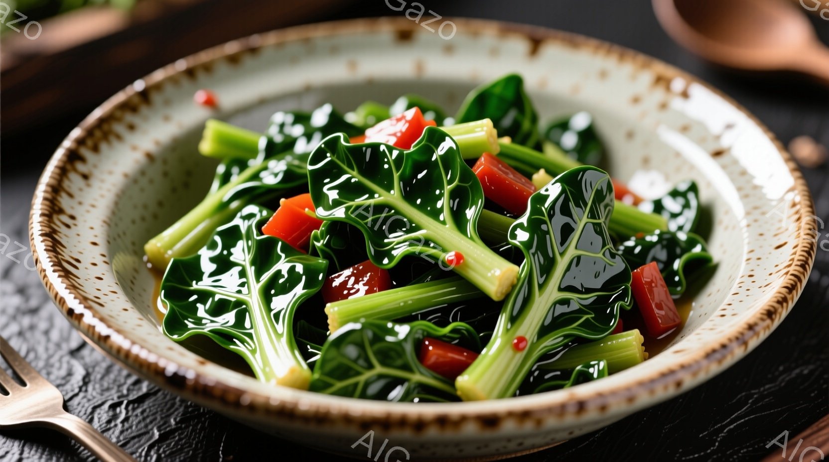 この無料AI生成画像「カラフルなチャードが木製のまな板に置かれています。茎は黄色、オレンジ、赤、緑と鮮やかな色合いで、葉は濃い緑色です。背景には、ぼやけた色の食器と、金属製のナイフの一部が見えます。」は、2025年10月23日に作成されました。 サイズは 1664×928px の高解像度で、商用利用も可能なフリー素材として提供しています。