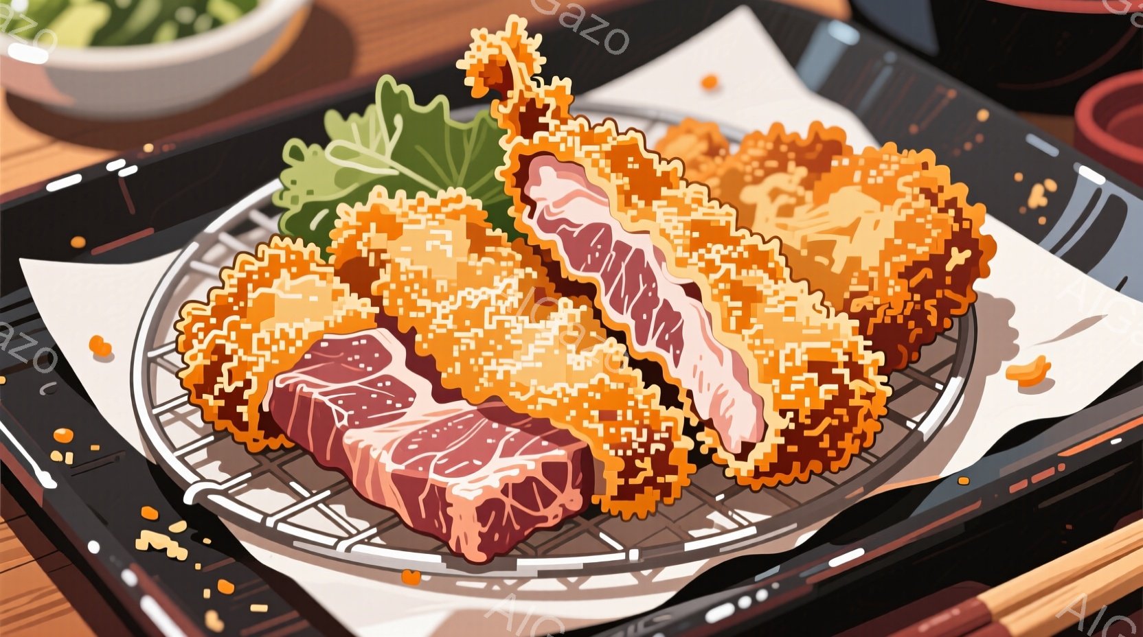 この無料AI生成画像「白い皿に、揚げたカツレツとキャベツの千切りが盛り付けられています。カツレツは衣が細かく、ソースがかけられており、美味しそうです。背景には、漆塗りの膳と茶色の湯呑みが写り、料理をより引き立てています。」は、2025年10月23日に作成されました。 サイズは 1664×928px の高解像度で、商用利用も可能なフリー素材として提供しています。