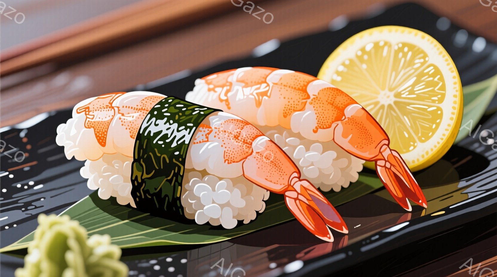 この無料AI生成画像「海老の寿司が皿の上に置かれており、シャリと海苔で巻かれ、鮮やかなオレンジ色の海老が乗っています。皿は黒色で光沢があり、背景には緑色の添え物がぼやけて見えます。全体的に、新鮮で食欲をそそる印象を与える美しい寿司の写真です。」は、2025年10月23日に作成されました。 サイズは 1664×928px の高解像度で、商用利用も可能なフリー素材として提供しています。