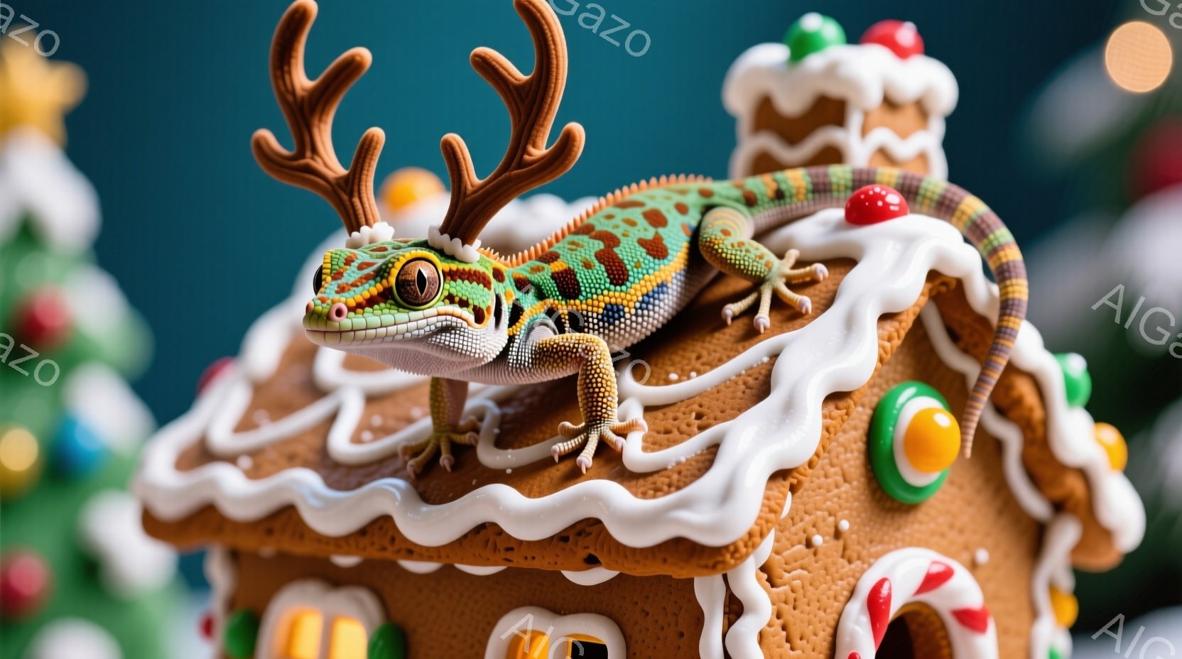 この無料AI生成画像「白い雪の上に、鮮やかな緑と黒の模様を持つヤモリが横たわっています。周囲には灯りのともったキャンドルが置かれ、暖かく幻想的な雰囲気を醸し出しています。背景には雪景色が見え、まるで冬の夜の静寂と温もりを描いた絵画のようです。」は、2025年10月22日に作成されました。 サイズは 1664×928px の高解像度で、商用利用も可能なフリー素材として提供しています。