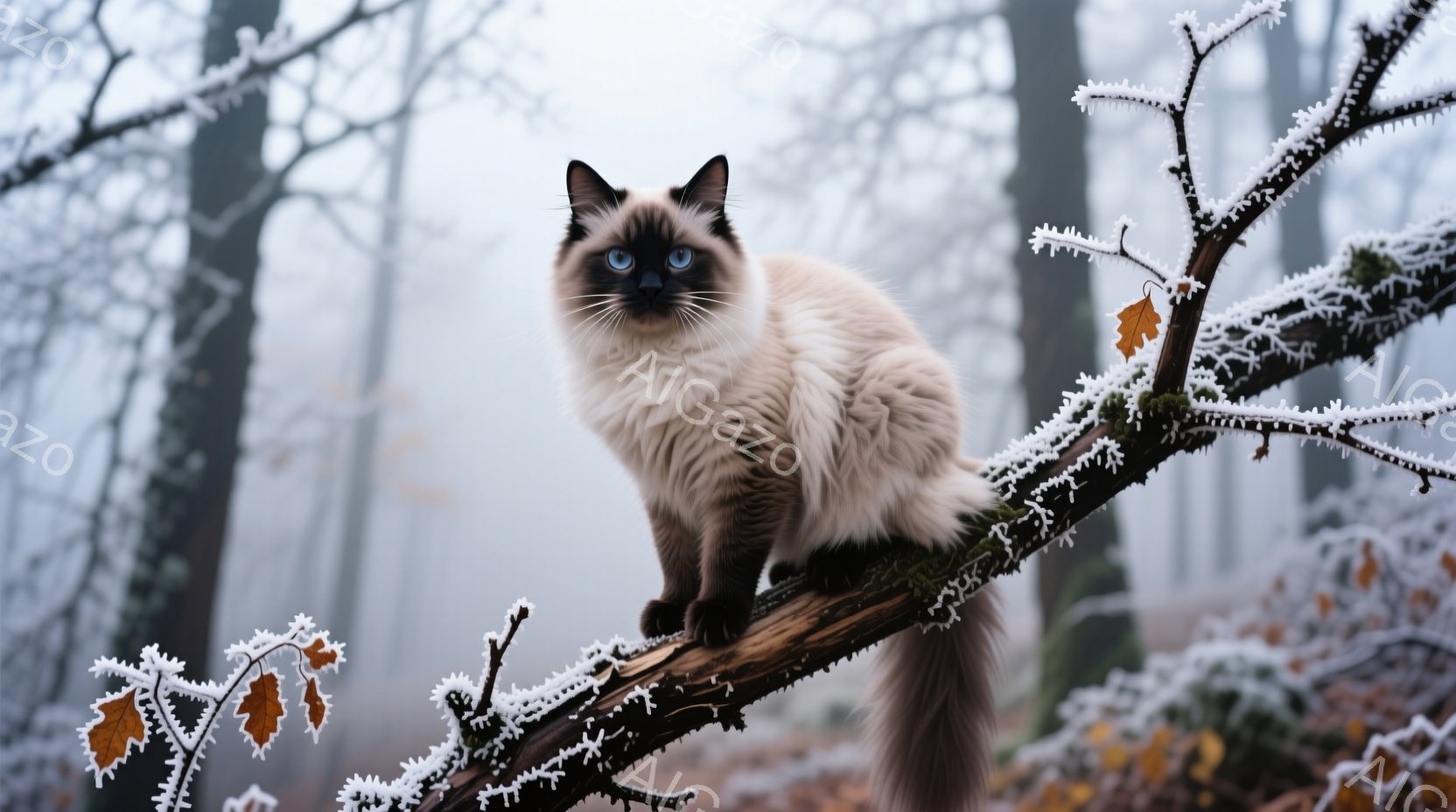 この無料AI生成画像「長毛の縞模様の猫が雪に覆われた岩の上に立っている。背景には鮮やかな黄色の紅葉と、暗い緑の針葉樹林が広がっており、冬の澄んだ空気を感じさせる。猫は凛とした表情で遠くを見つめ、冬の自然の中で堂々と生きる姿を表現している。」は、2025年10月23日に作成されました。 サイズは 1664×928px の高解像度で、商用利用も可能なフリー素材として提供しています。