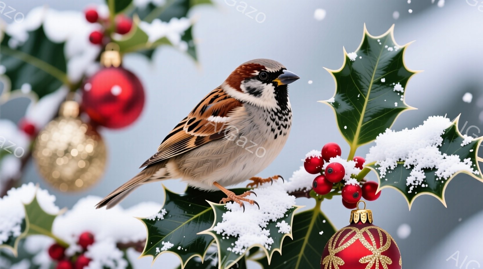 この無料AI生成画像「古びた木製のドアに、スズメが一羽止まっています。スズメは茶色と灰色の羽を持ち、正面を向いて少し上を見ているようです。背景には、赤い実やリボン、松ぼっくりなどで飾られたクリスマスリースがあり、冬の暖かい雰囲気を醸し出しています。」は、2025年10月22日に作成されました。 サイズは 1664×928px の高解像度で、商用利用も可能なフリー素材として提供しています。