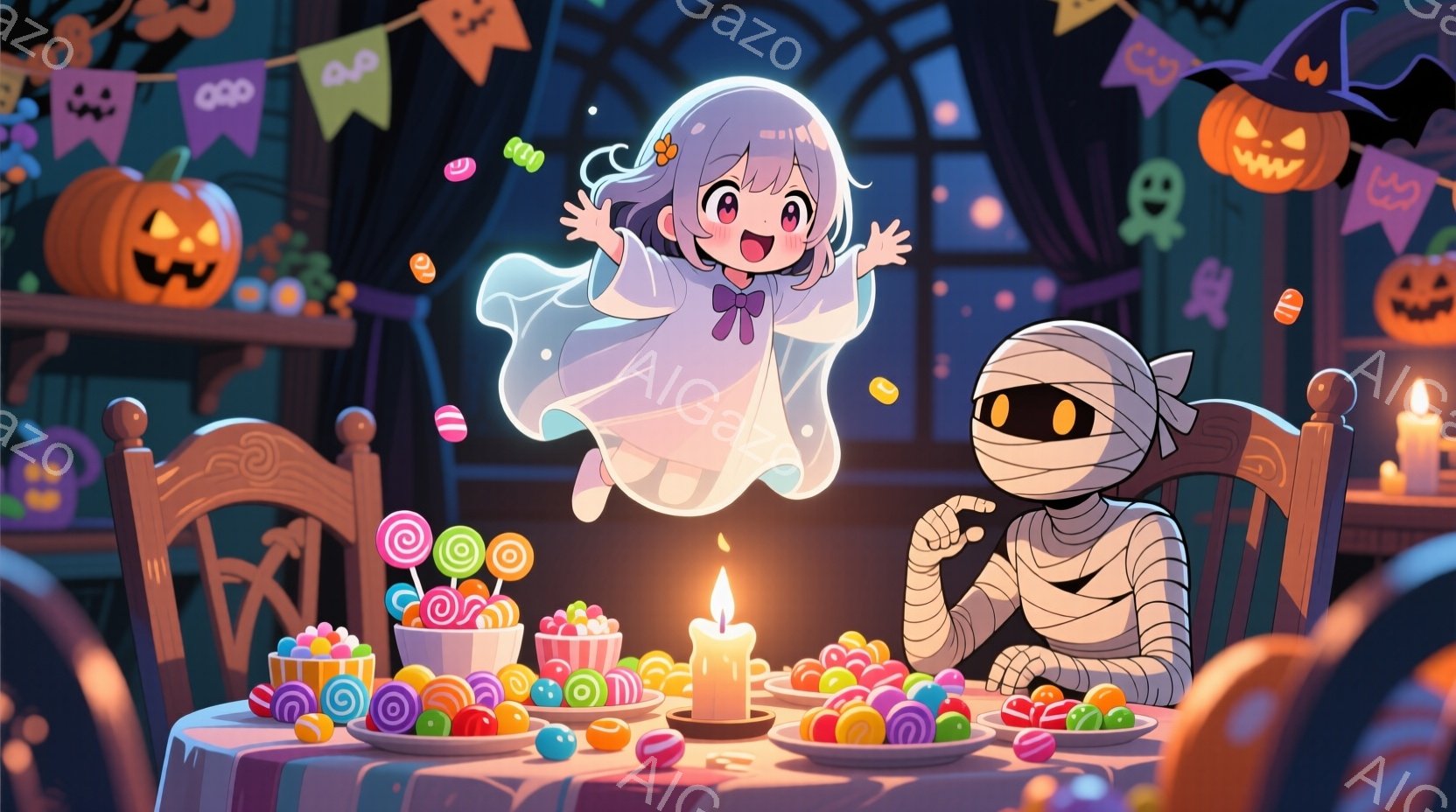 この無料AI生成画像「5人の少女たちが円になって座り、お菓子を広げて楽しんでいます。彼女たちはそれぞれ異なる髪色と服装で、制服のような衣装に、頭には角のような飾りをつけています。背景にはテレビやぬいぐるみ、暖炉があり、暖かい雰囲気の部屋の中でくつろいでいる様子が伺えます。」は、2025年10月24日に作成されました。 サイズは 1664×928px の高解像度で、商用利用も可能なフリー素材として提供しています。