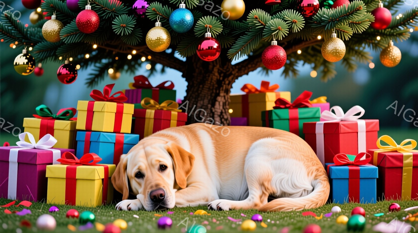 この無料AI生成画像「明るいクリーム色のラブラドールの子犬が、クリスマスライトで飾られた木の椅子のフレームの中で、前足を伸ばして遊んでいます。子犬は少し上向きに顔を上げており、好奇心と遊び心に満ちた表情をしています。背景は暗くぼやけており、暖かく、お祝いムードが漂う光景です。」は、2025年10月24日に作成されました。 サイズは 1664×928px の高解像度で、商用利用も可能なフリー素材として提供しています。